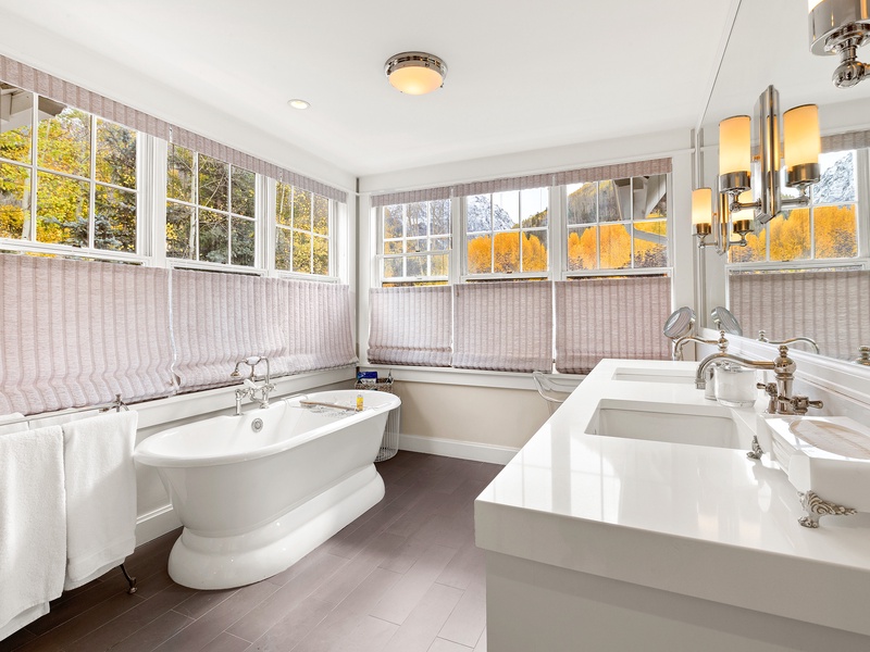 Park Place combines Victorian charm with modern style, creating a luxurious mountain retreat in Telluride. This meticulously designed five-bedroom home offers unique artwork, custom lighting, and warm, inviting decor in every room. With an open layout connecting the chef's kitchen, dining, and living areas, guests can enjoy a cozy fireplace, bay window seating, and abundant natural light from south- and east-facing windows. Start your day with coffee by the bay or savor al fresco dining on the p...