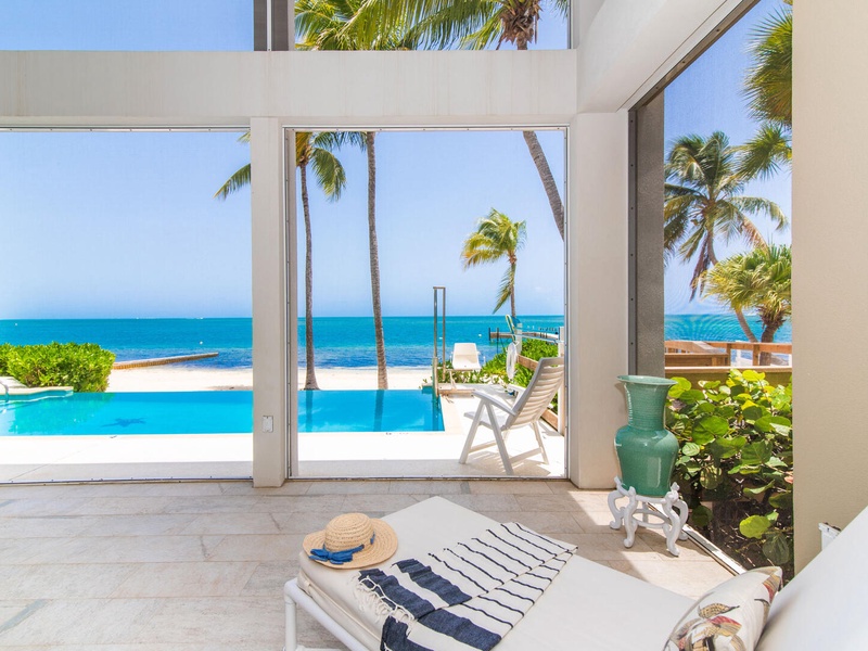 Welcome to Abita Kai (pronounced A-bit-a Kai), a spacious oceanfront villa that has a private pool, dock, and sandy backyard beach. The calm shallow waters behind this home offer a wide palette of blue and turquoise colors along with glowing orange sunsets.