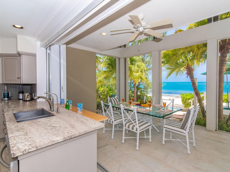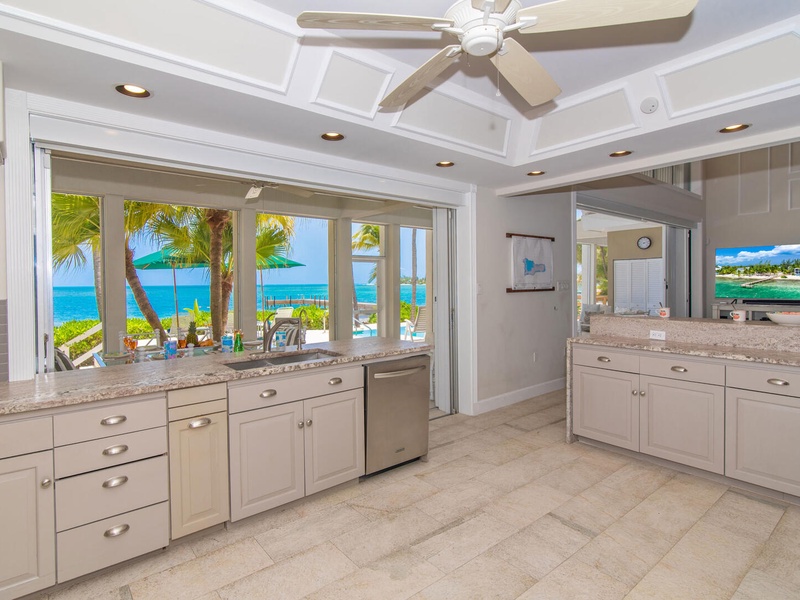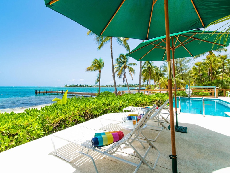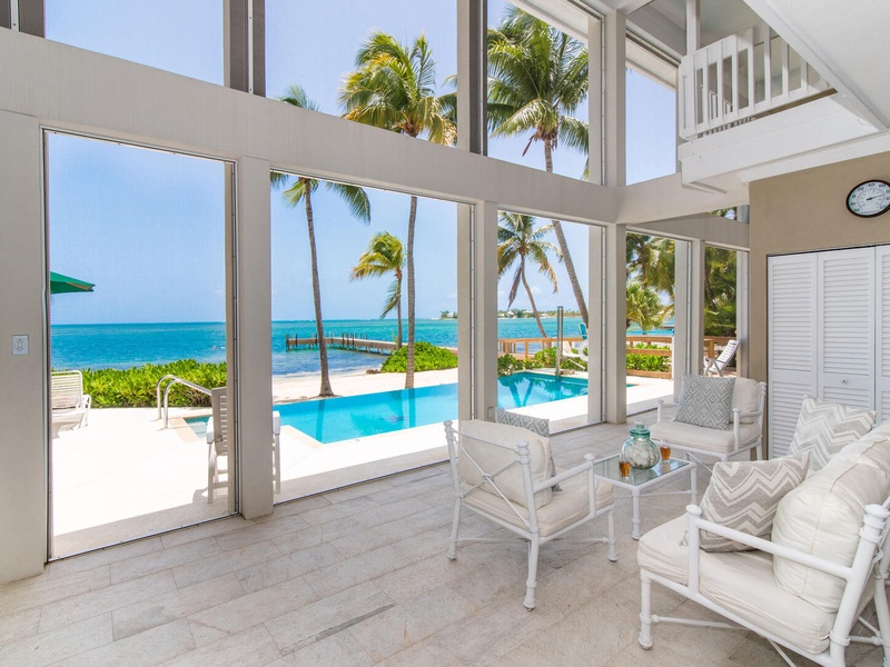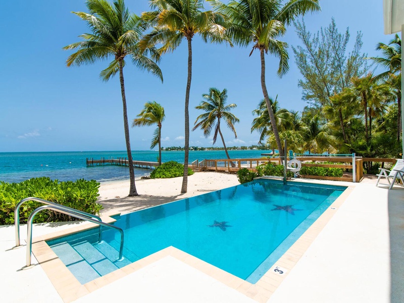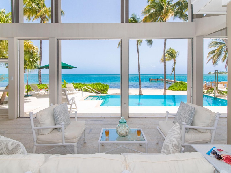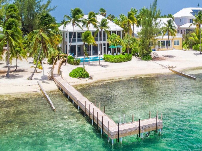 Welcome to Abita Kai (pronounced A-bit-a Kai), a spacious oceanfront villa with a detached guest cottage, plus a private pool, dock, and sandy backyard beach. The calm, shallow waters behind this home offer a wide palette of blue and turquoise colors along with glowing orange sunsets.