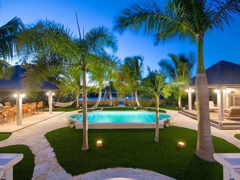 The solar heated pool sits between the gazebo and an outdoor bar and grill, all of which border the 50’ dock along the canal. If additional space is needed, a 2-bedroom, 2 bathroom guest house with a kitchenette and...