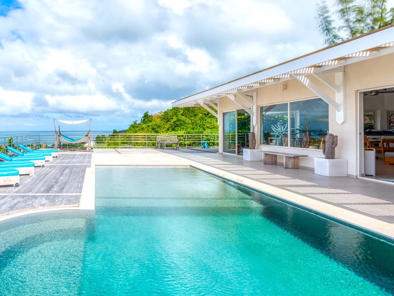 Originally known as Azur Reve, the villa has been thoughtfully renovated after Hurrican Irma; maintaining the villa’s charm while updating its style. Hidden behind a magnificent old Caribbean stone wall, this newly renovated villa is as enchanting outside as it is inside. The stone paved courtyard filled with lush gardens, tropical trees an...