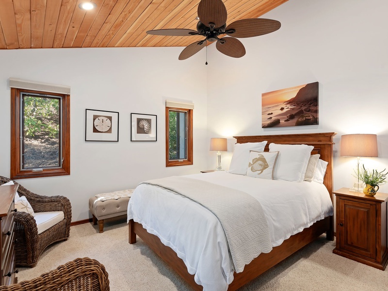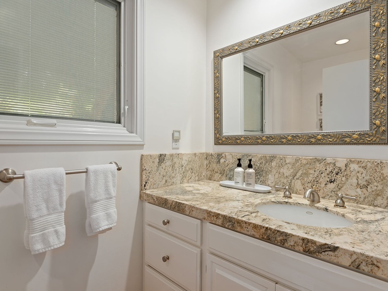 Enter into this open, light-filled floor plan with coastal-inspired decor and make yourself at home. The living room features plenty of seating around a stone fire...
