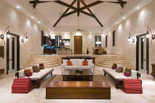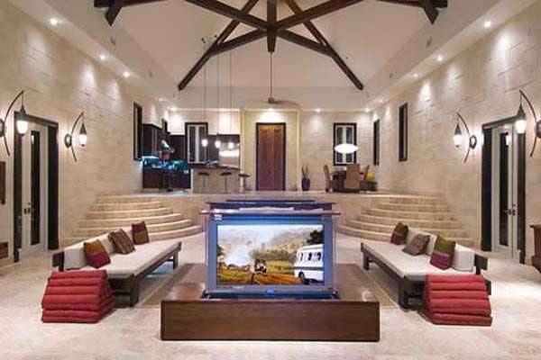 Walking into Villa Balinese whisks you away immediately to an intoxicating tropical island hideaway. The entryway features a large river-stone bank of cascadin...