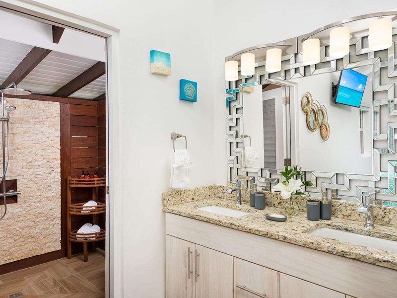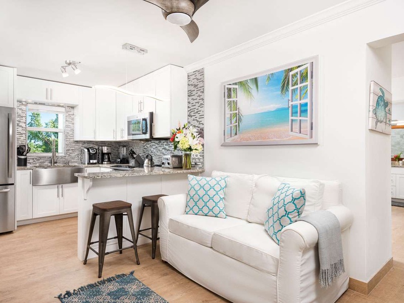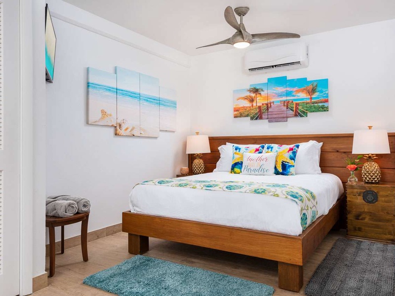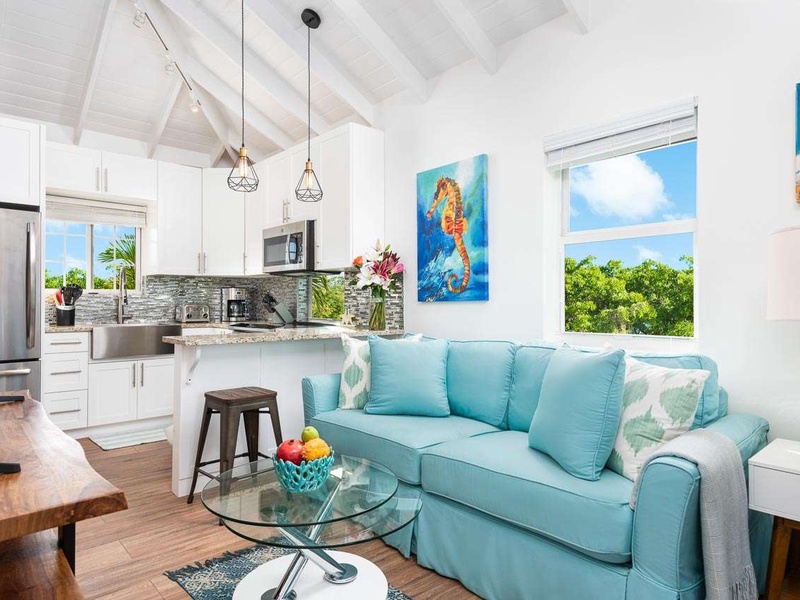 This cozy beach house villa features high-quality materials and stunning simplicity. Natural light streams through windows in every room, illuminating colorful ocean artwork and tr...