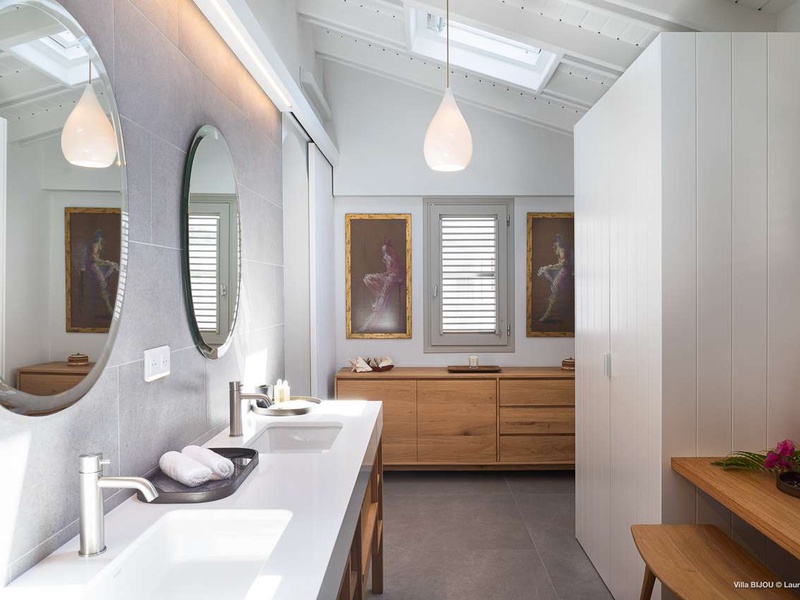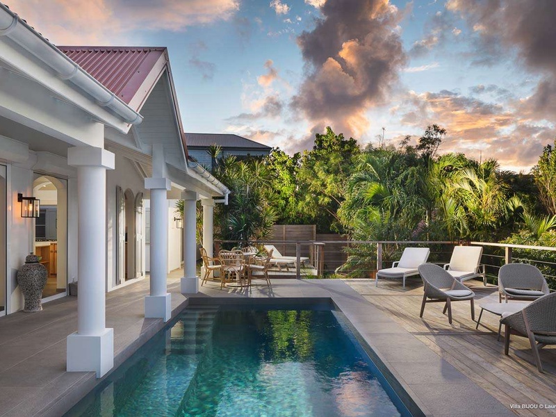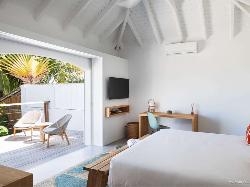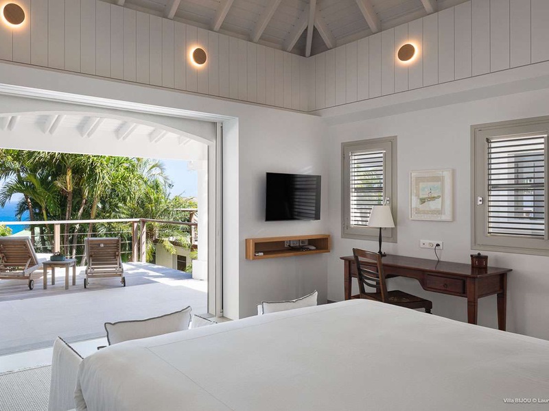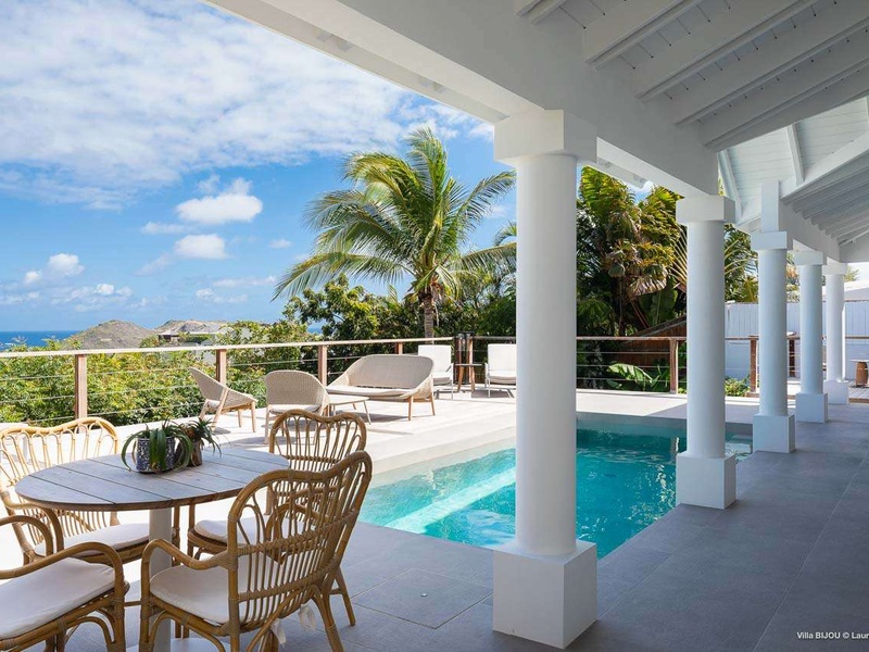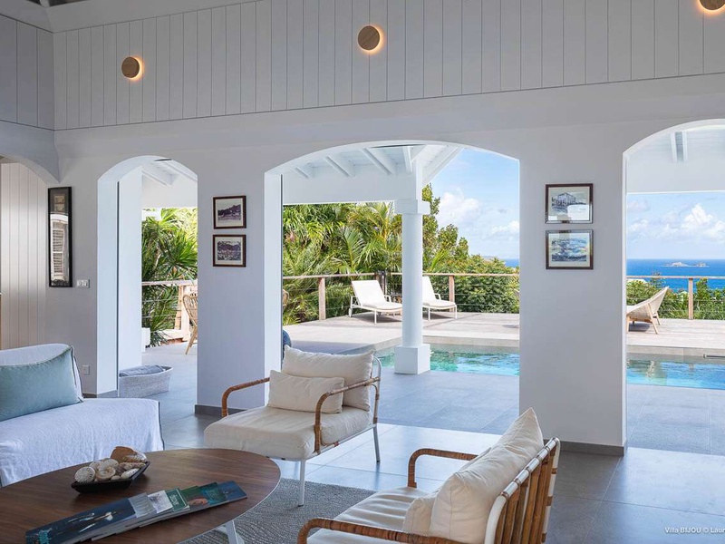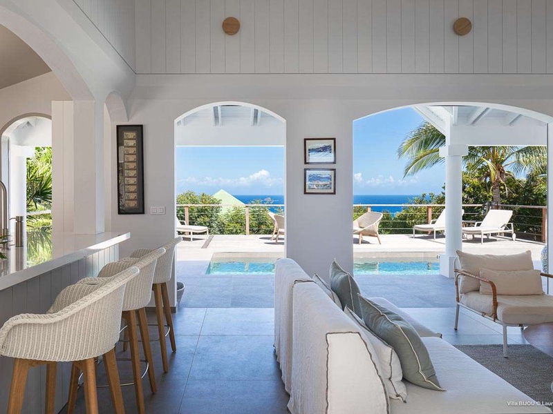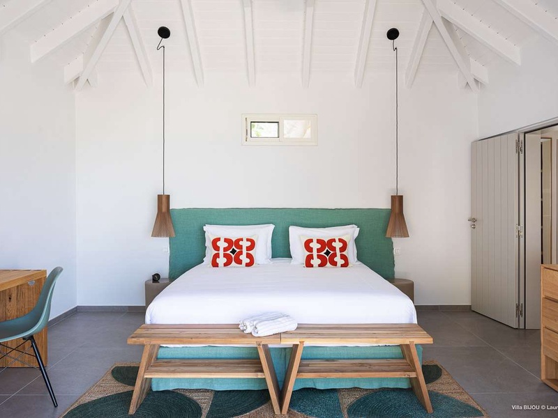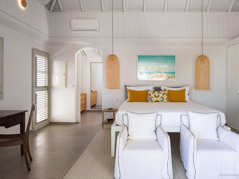 In true island fashion, the interiors of Villa Bijou feature a clean design, enhanced with tasteful décor, island artwork, and antique pieces throughout. The warm touches of wood in the furnishings contrast with the all-white design, while woven textures and splashes of warm orange add an el...