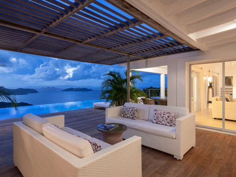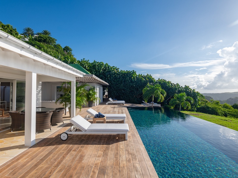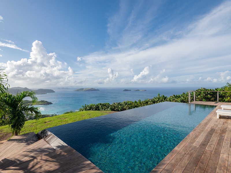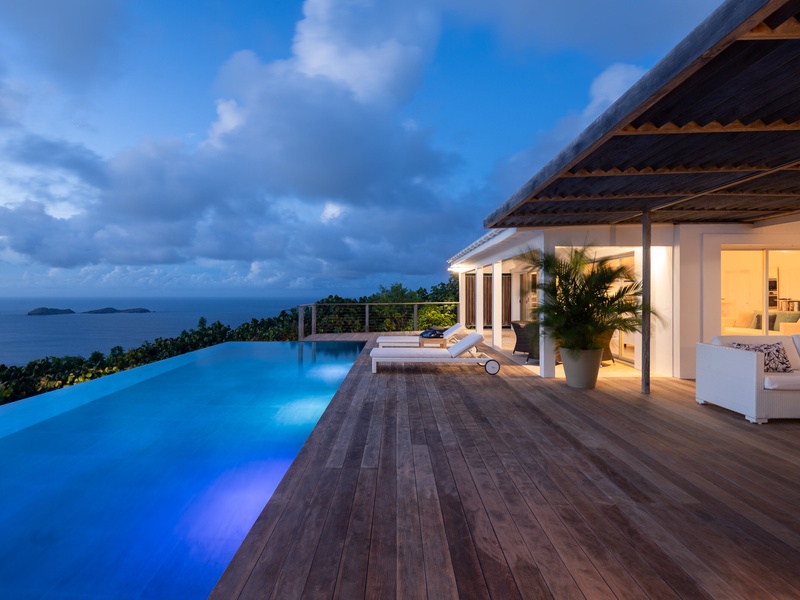 A long infinity pool serves as the centerpiece of a spacious deck that extends along the main pavilion, where the gentle sound of the surf below complements the sweeping panorama of the sea and neighboring islands. As the sun sets, fiery Caribbean colors paint the sky, and when the lights of distant...