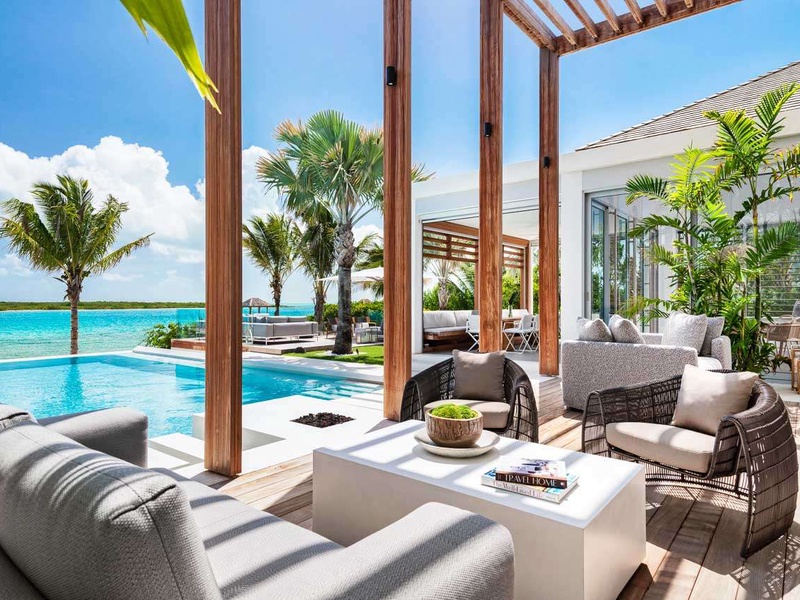 Villa Cabuya, (villa code: TC CAB) is a 6-bedroom with soaring ceilings, lending a sense of airy spaciousness, that greet you as you enter this luxurious villa nestled in one of the most exclusive gated communities in Providenciales. Floor to ceiling glass paneling draws the eye to expansive views of turquoise waters and a protected wildlife preserve that beckons beyond.