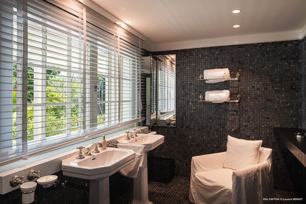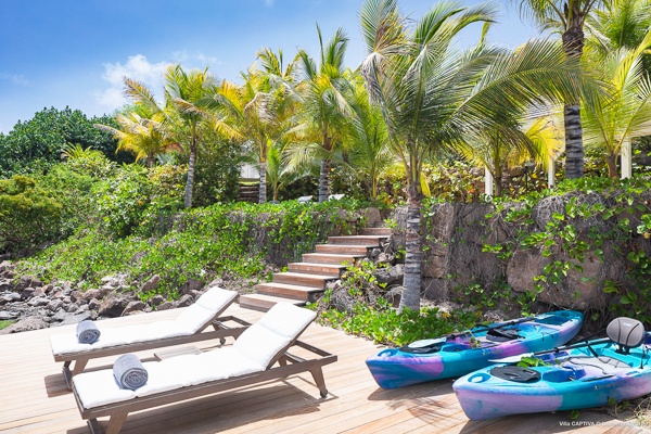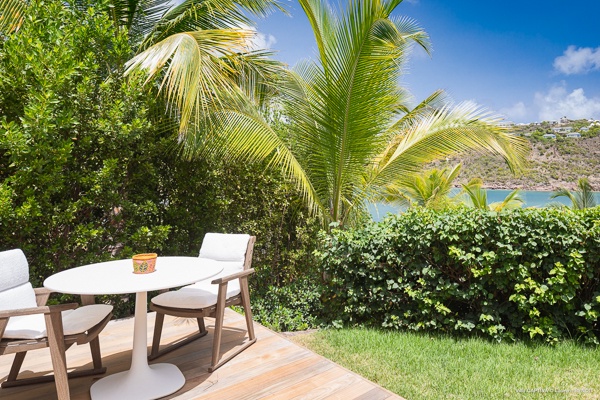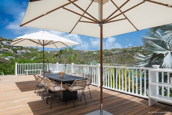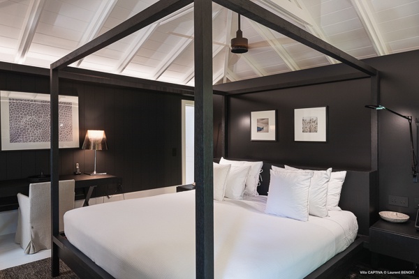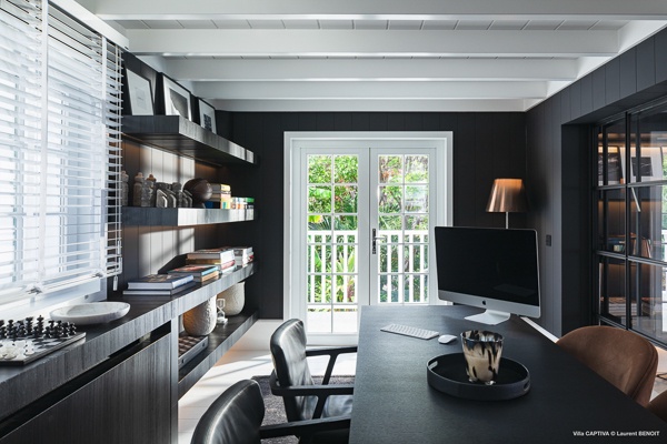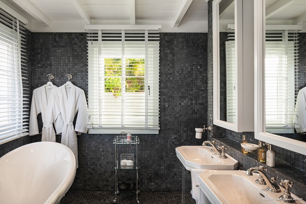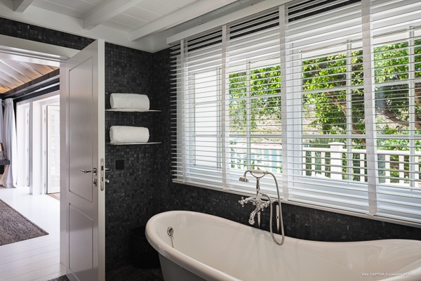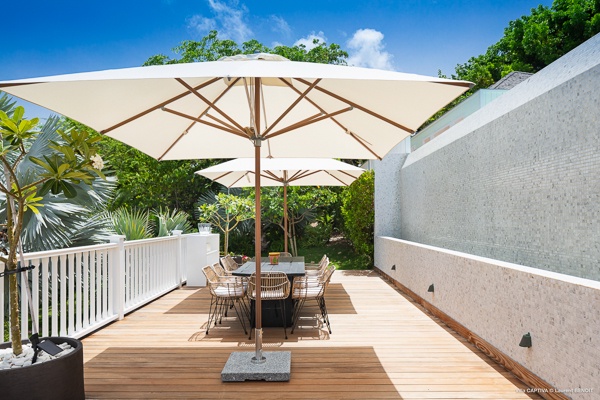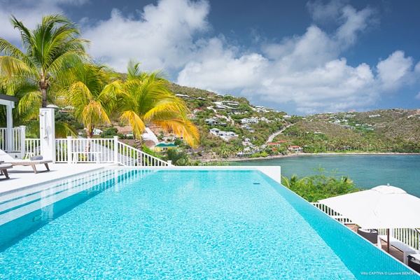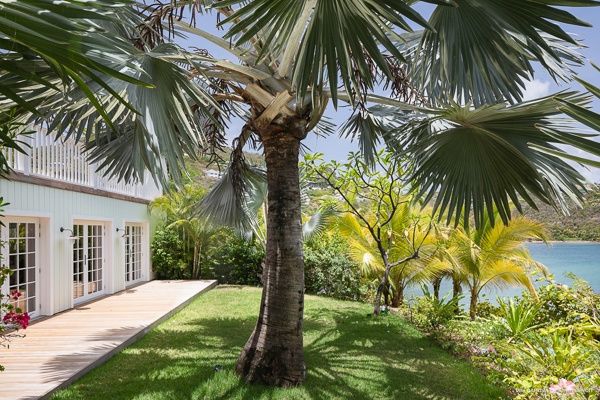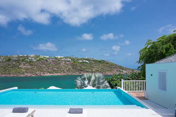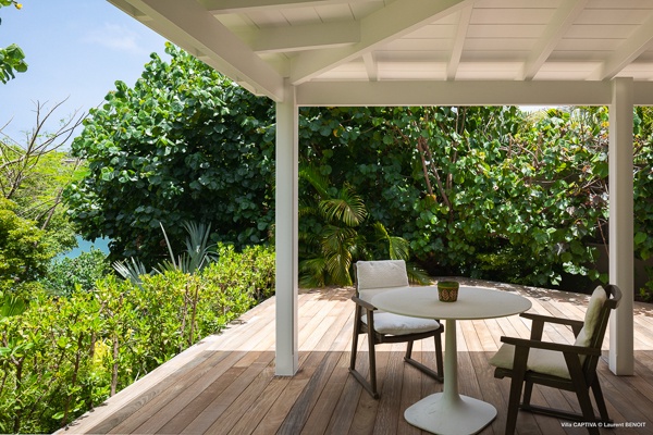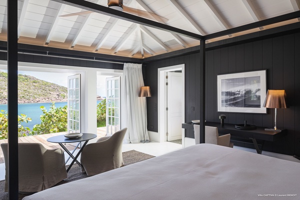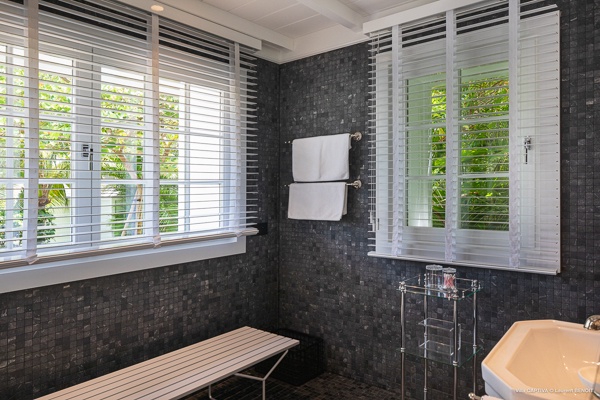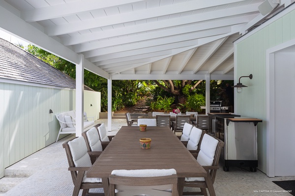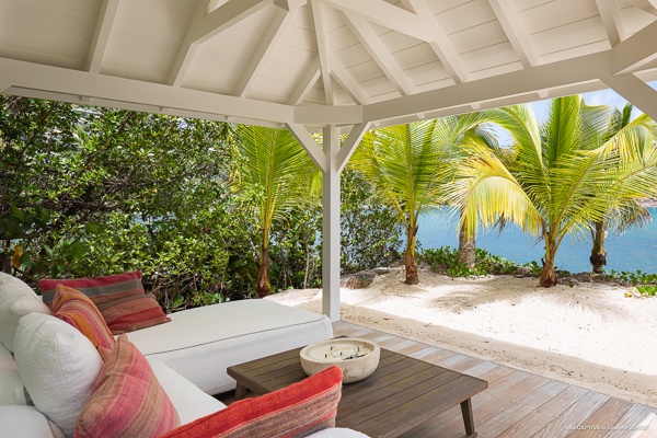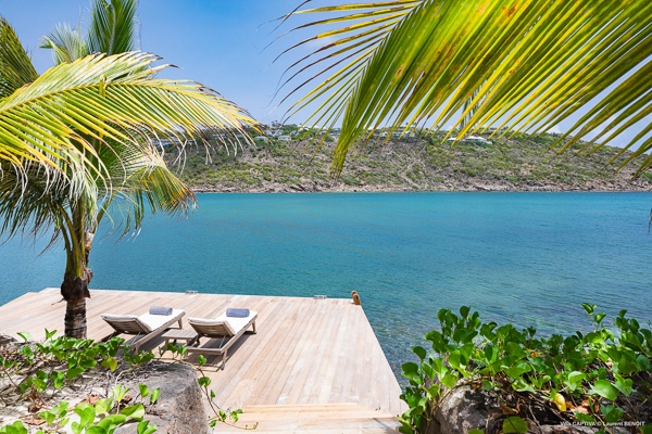 This newly-built villa spread out over several pavilions, marries classic Caribbean charm with top-of-the-line furnishings. An open floor-plan kitchen and living room lend an airy feel to the communal space. White wood floors paired with Belgian-linen slip-colored sofas offset otherwise modern lines and black bookshelves, creating a ...