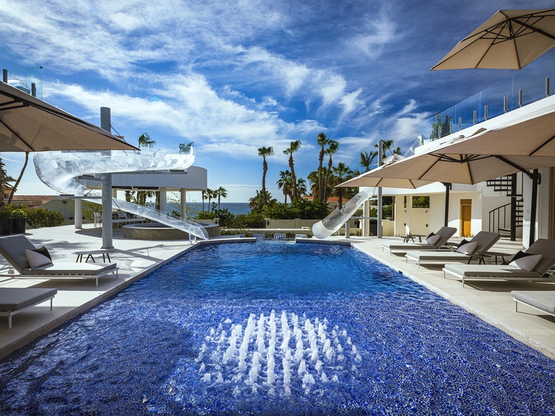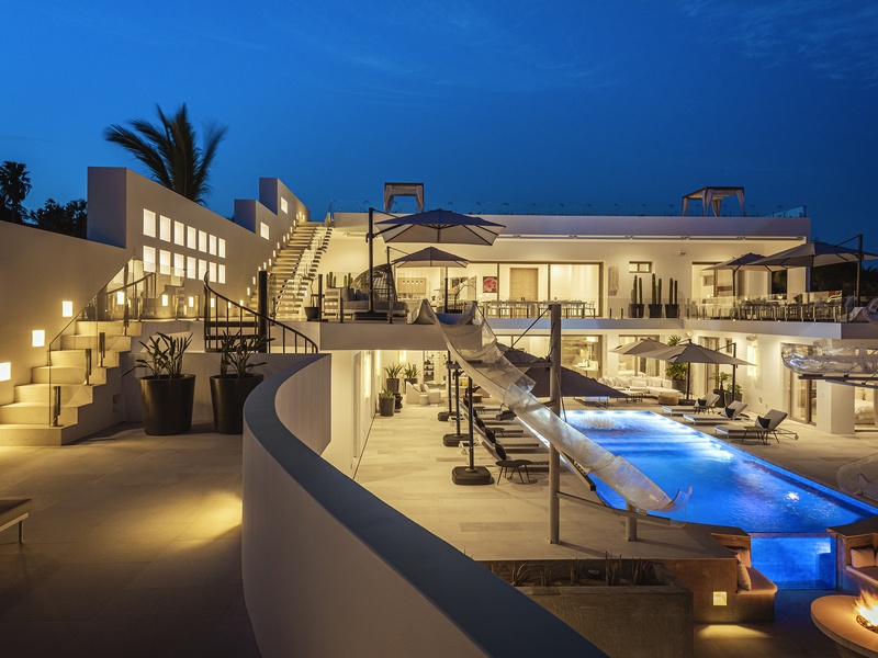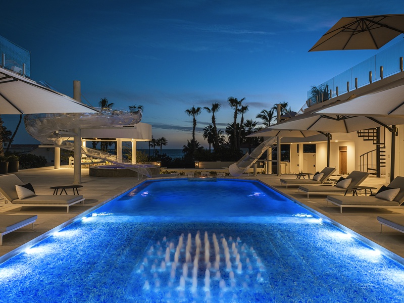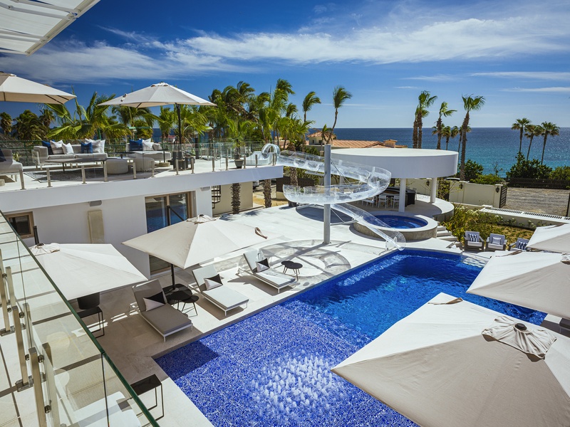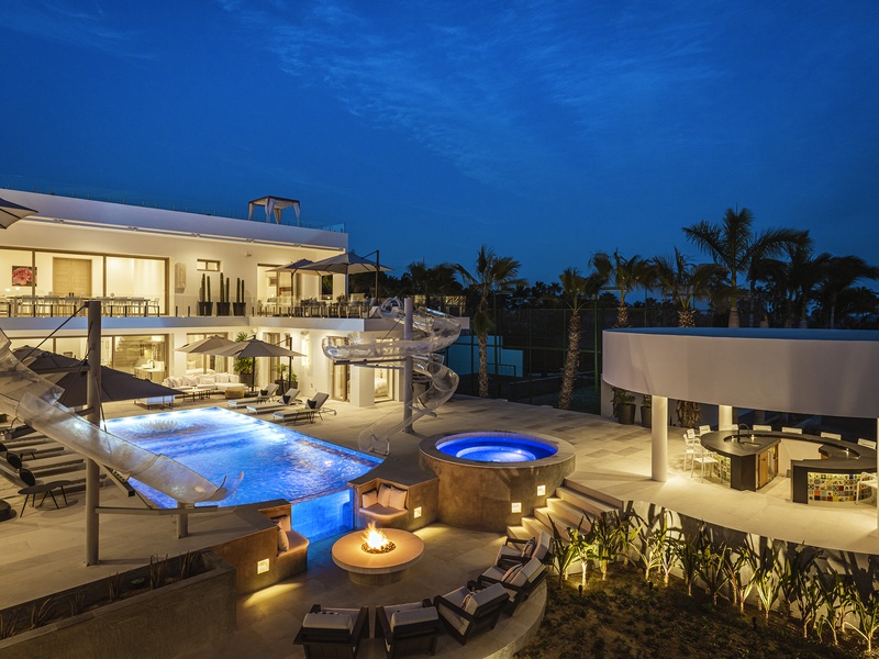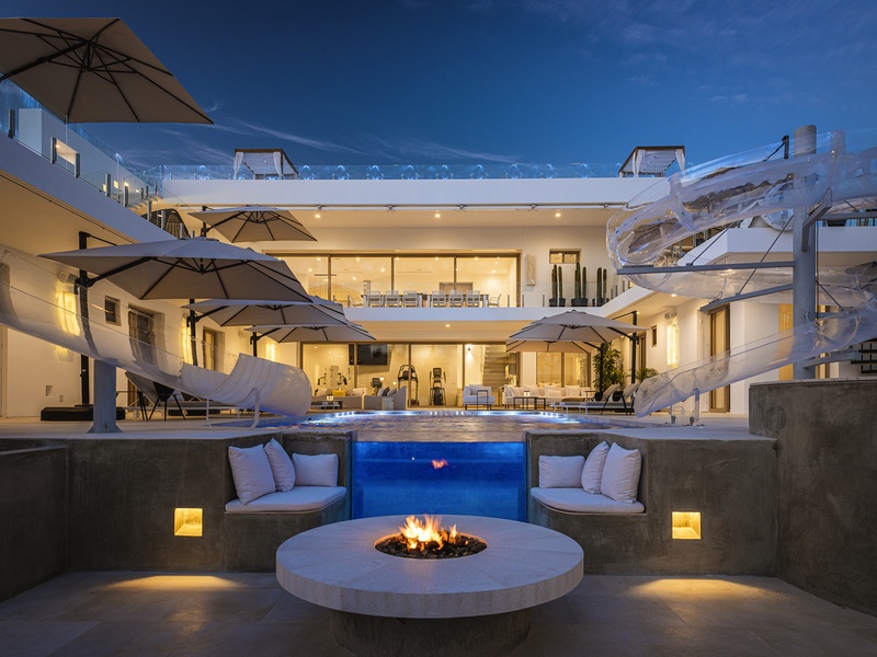 Among the villa’s outstanding features, guests will enjoy the dazzling pool with two clear waterslides, a jacuzzi, a rooftop fire p...