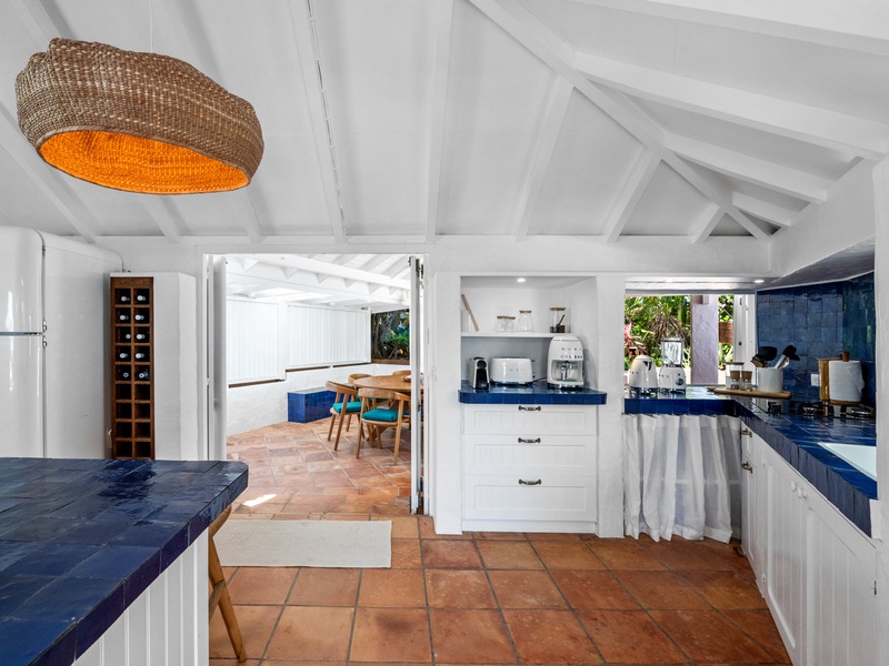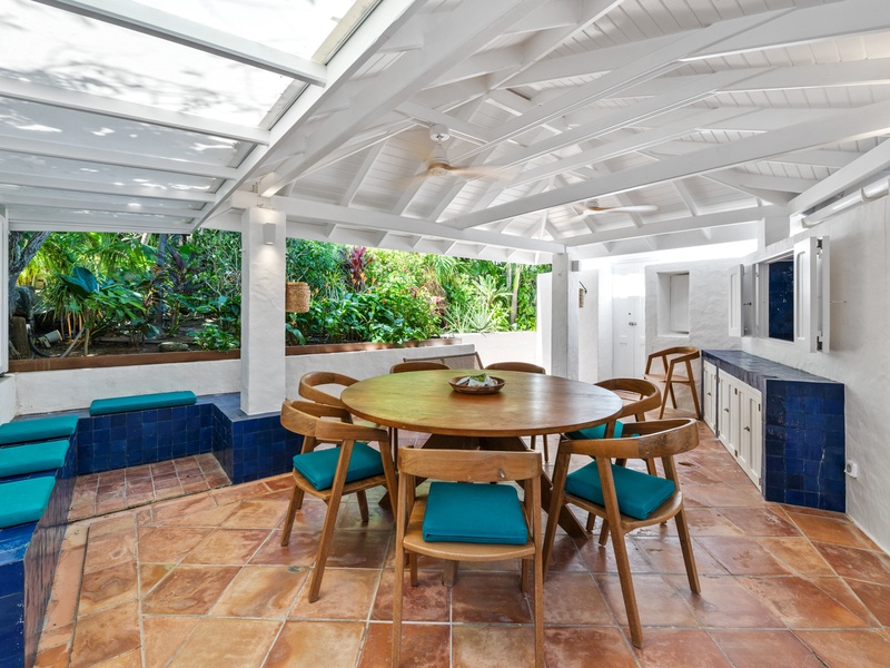 The main living area features an open floor plan, seamlessly blending the living room, dining area, and kitchen. Large sliding glass doors allow the gentle island breezes to flow through, creating a lovely indoor-outdoor living expe...