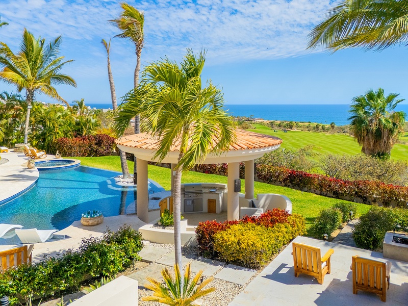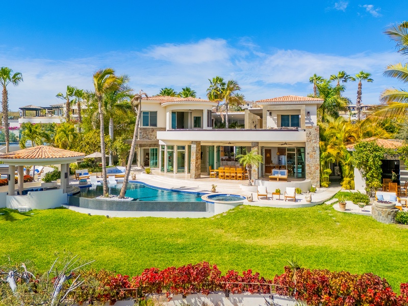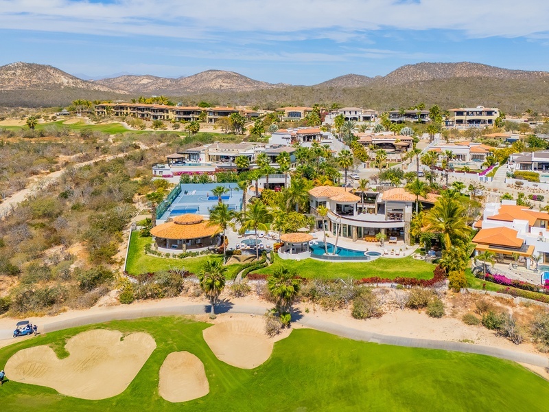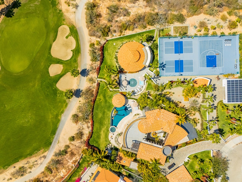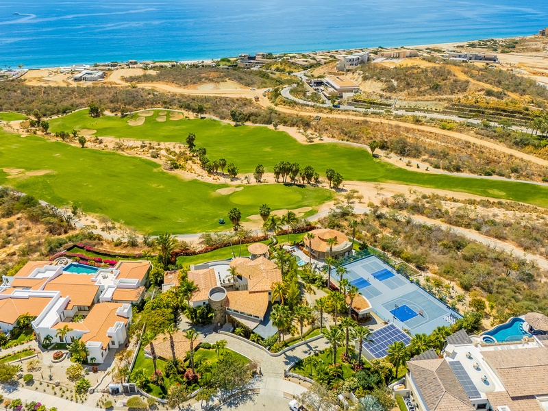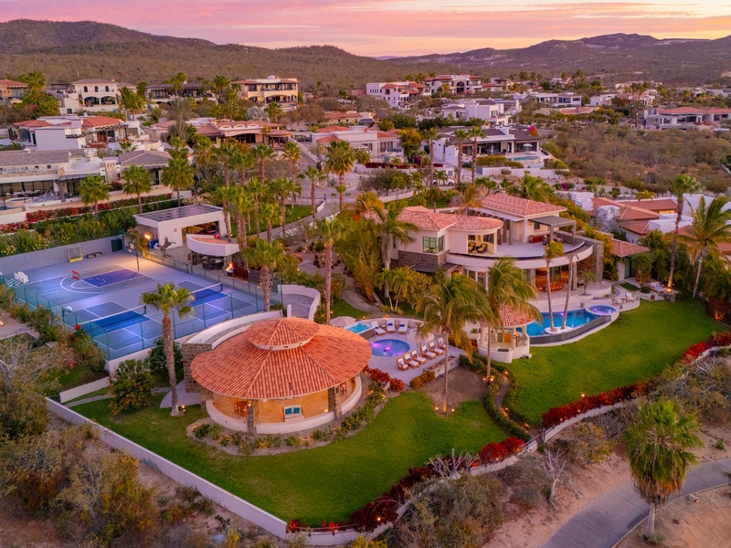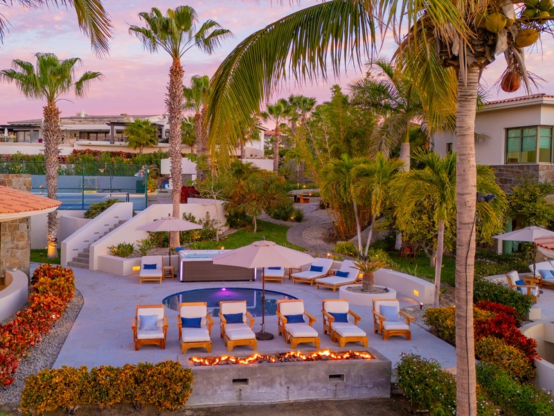 Tucked at the end of a quiet cul-de-sac in the exclusive Fundadores community, Casa Kokomo is a luxurious custom estate set on two expansive lots with panoramic views of the Sea of Cortez and Greg Norman golf course. Designed for unforgettable group getaways, the villa features two private pickleball courts, an infinity-edge pool and jacuzzi, a spacious palapa for open-air dining and dancing, and multiple lounging areas that blend seamlessly into the lush, tropical landscape.