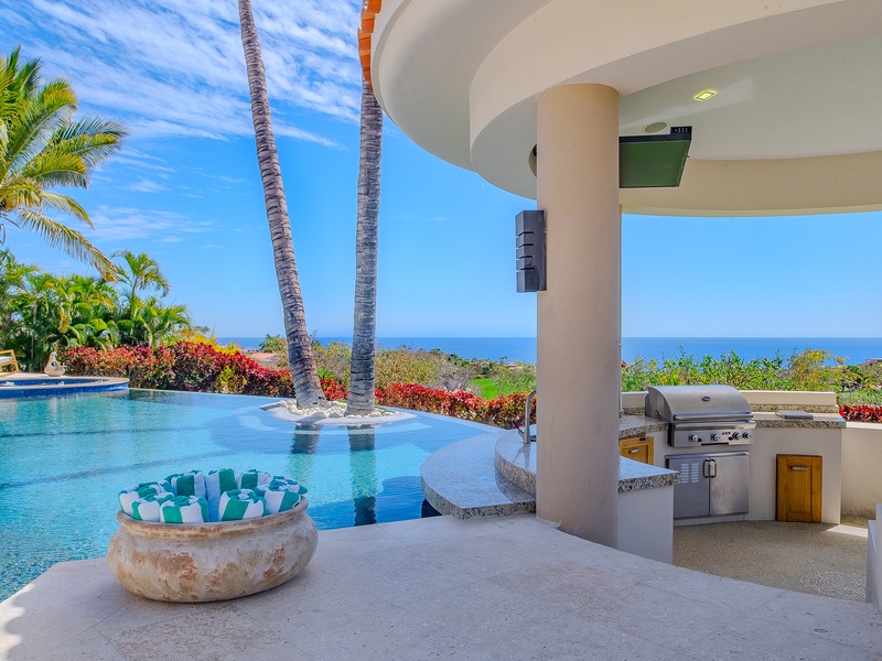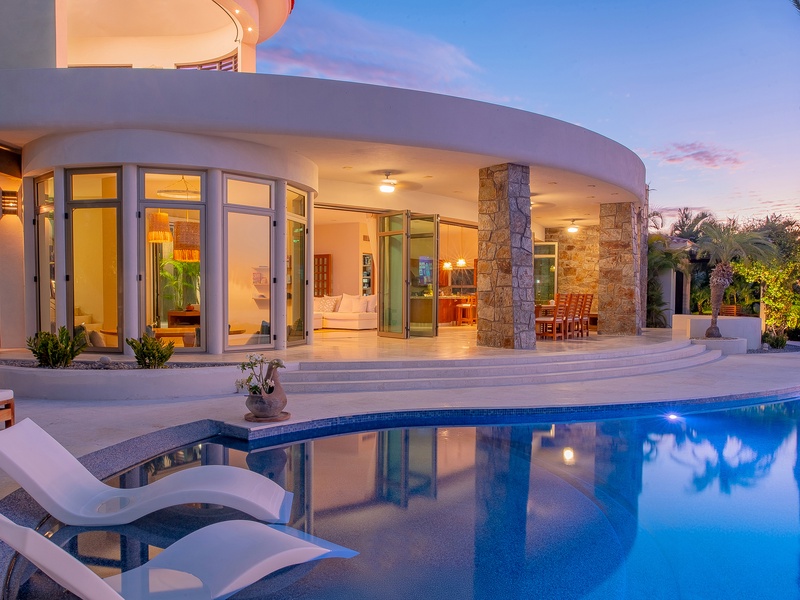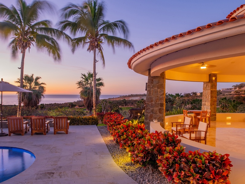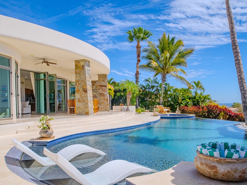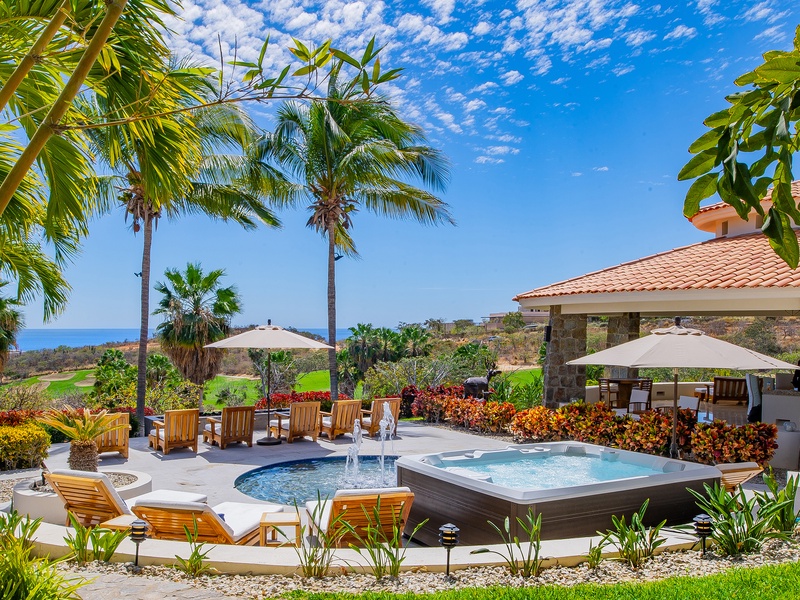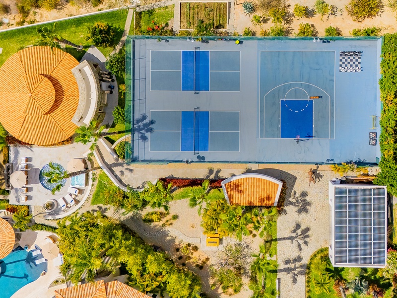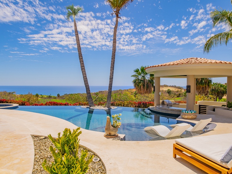 Tucked at the end of a quiet cul-de-sac in the exclusive Fundadores community, Casa Kokomo is a luxurious custom estate set on two expansive lots with panoramic views of the Sea of Cortez and Greg Norman golf course. Designed for unforgettable group getaways, the villa features two private pickleball courts, an infinity-edge pool and jacuzzi, a spacious palapa for open-air dining and dancing, and multiple lounging areas that blend seamlessly into the lush, tropical landscape.