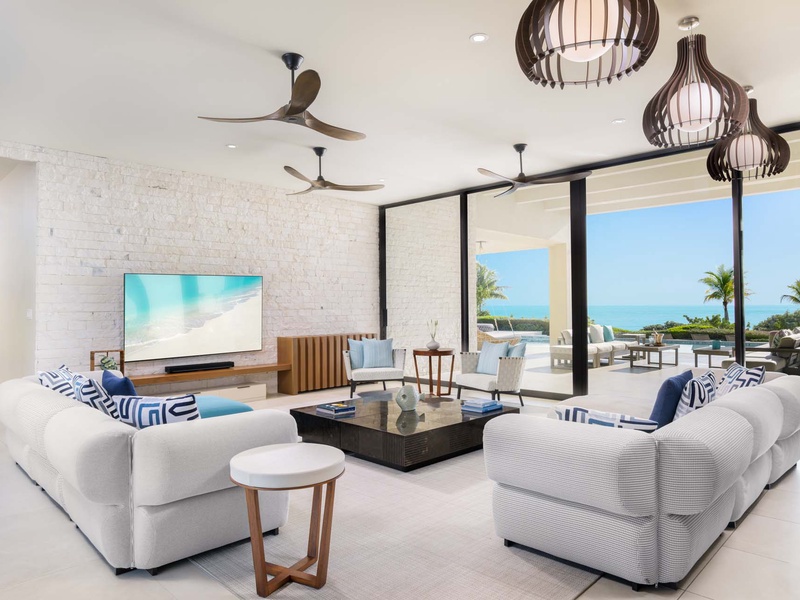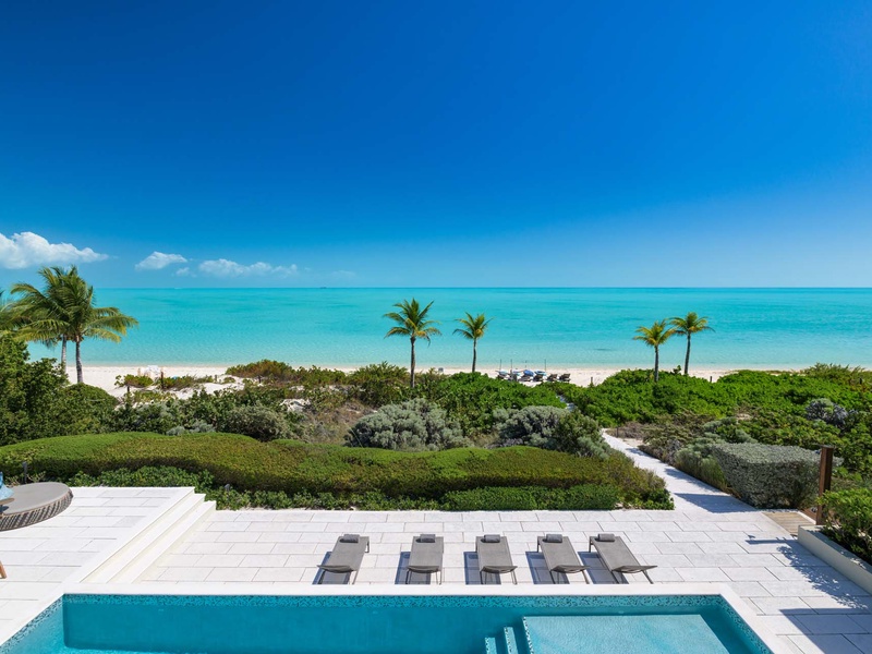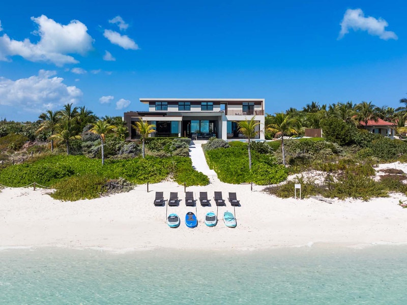 Perched on the powdery white sands of Long Bay Beach, Villa Clevelander (villa code: TC CLV) is a chic 6-bedroom, beachfront retreat designed for luxury, comfort, and unforgettable gatherings. With space for up to fourteen guests on three private acres, it blends expansive shared areas with peaceful corners for personal relaxation.