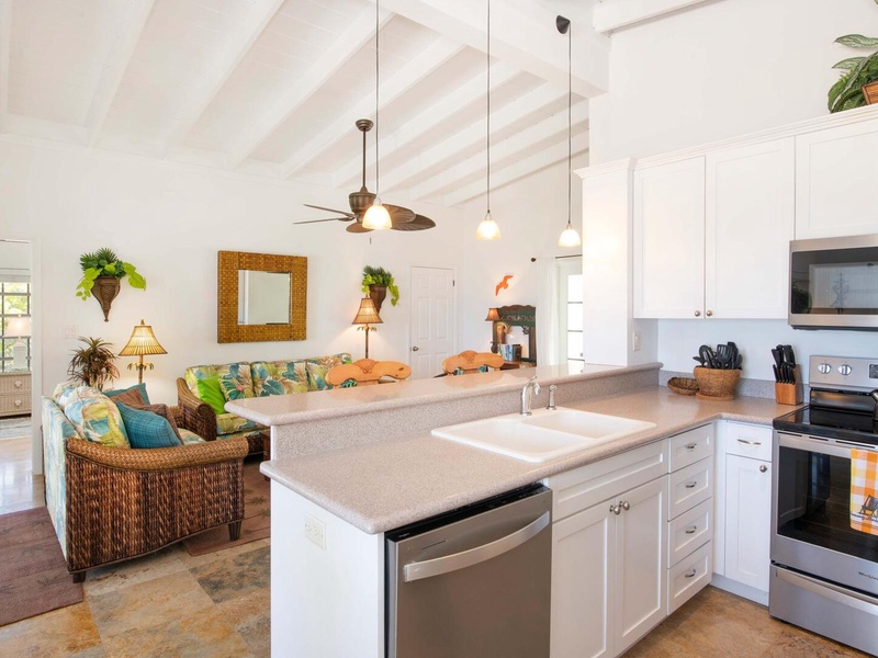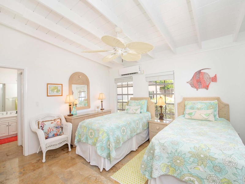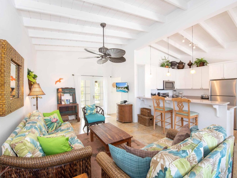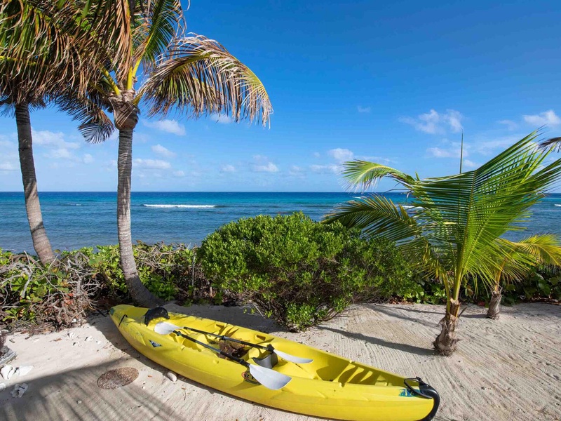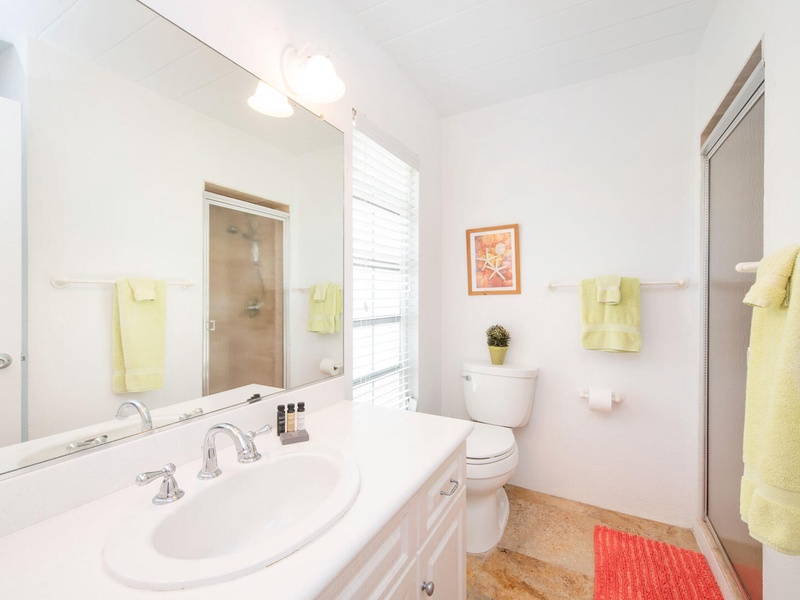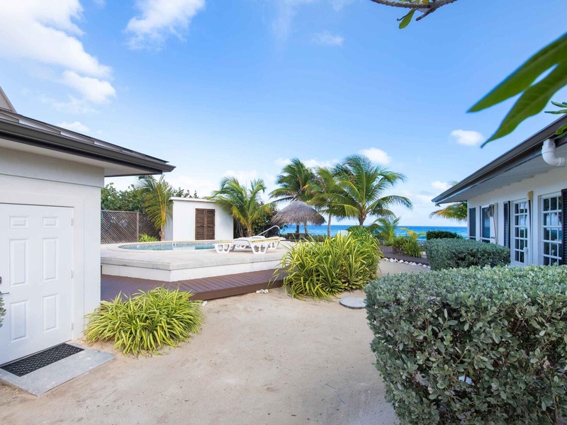 This Caribbean-style 3-bedroom home offers excellent snorkeling just steps off the backyard! A sandy trail with paver stones leads down to a pebbly beachfront. We recommend guests wear pool shoes or fins for foot protection when entering the water.