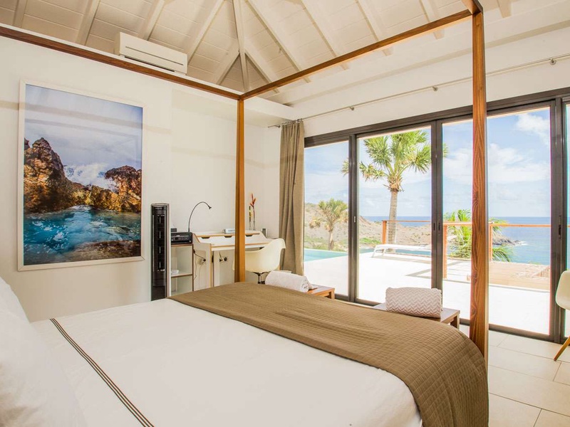 To begin with, the interiors at Villa Enzuma are airy and serene, well-suited to this remote corner of St. Barts. The clean shades of white make pops of sea-green even more lively, while tasteful artwork on the walls adds a high-end design aesthetic to the ho...