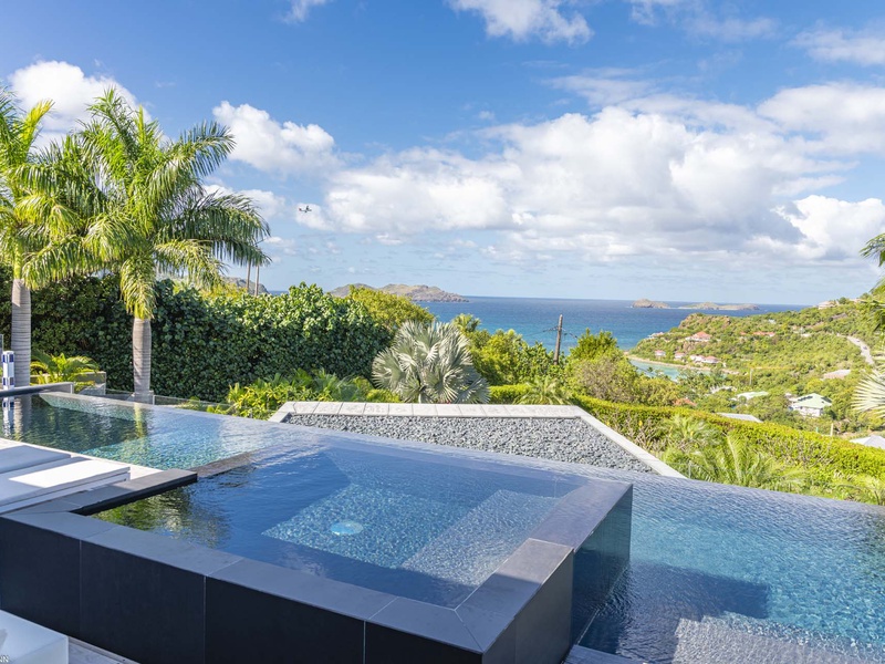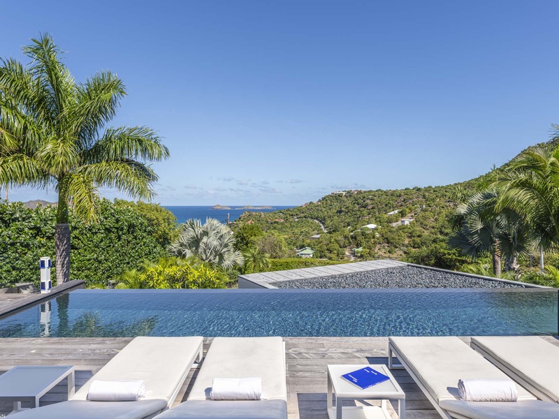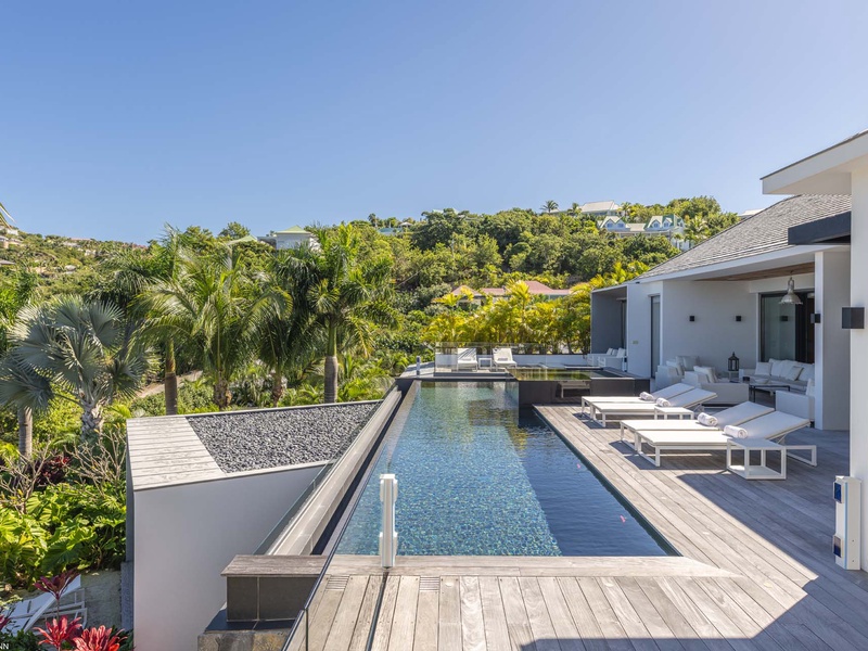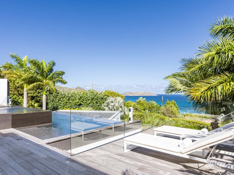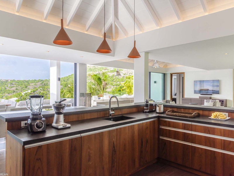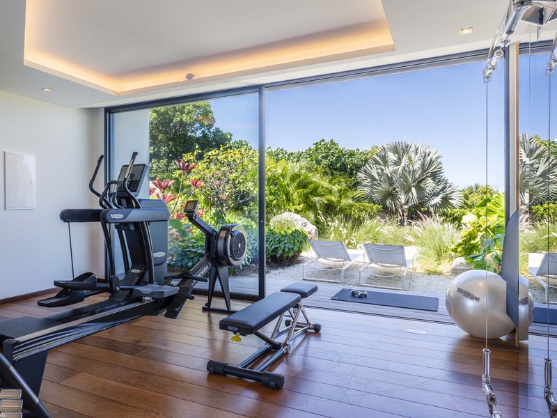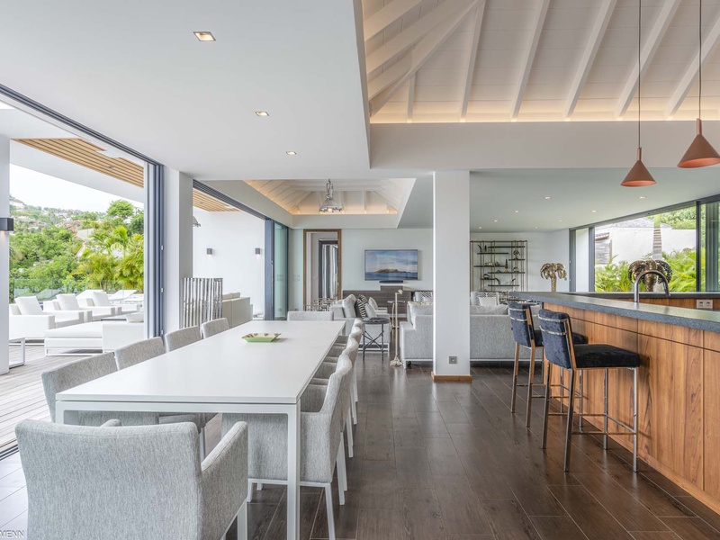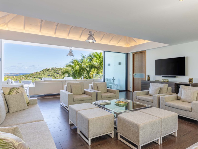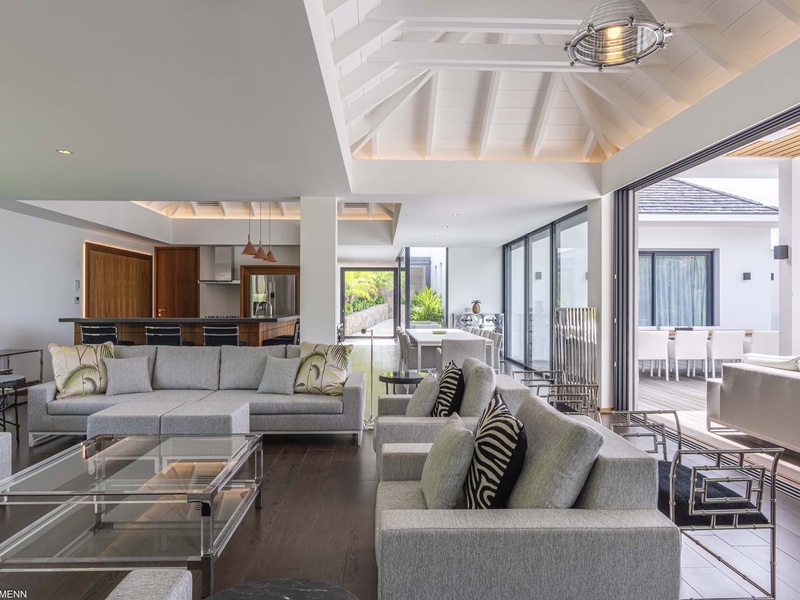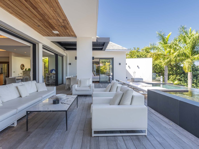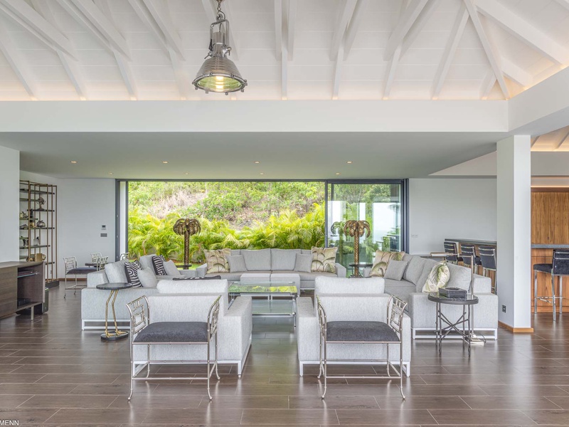 The interiors of Golden Palm Villa are stunning, with a clean and simple design that keeps the focus on the marvelous views. The décor is a fun, modern Palm Beach style, with contemporary neutral-colored furnishings contrasted by warm natural woo...