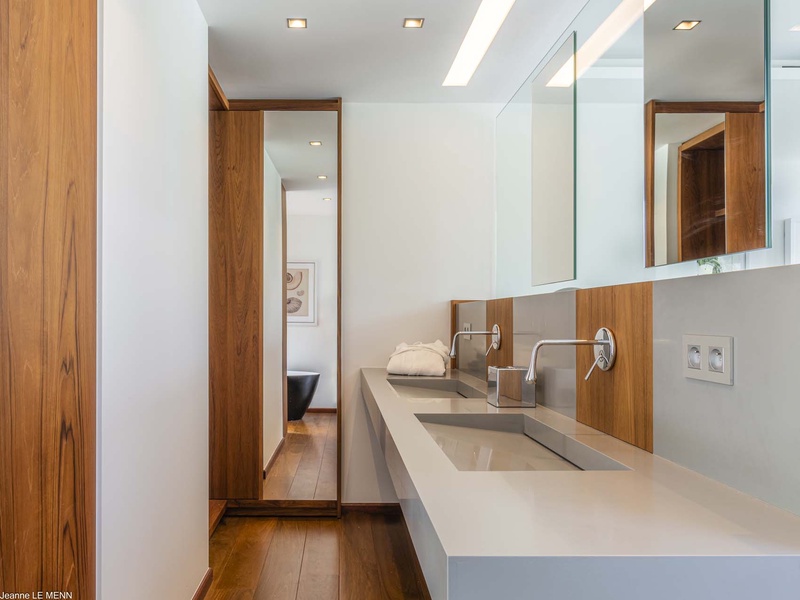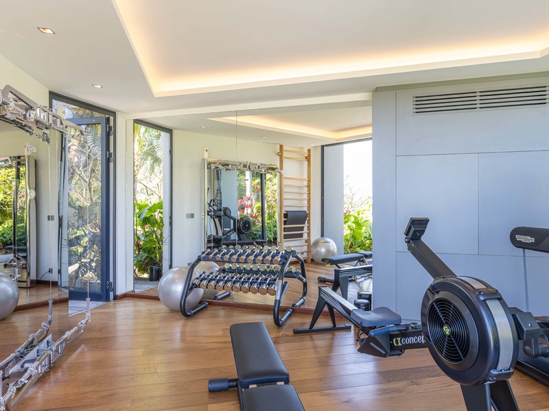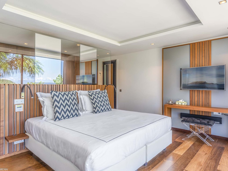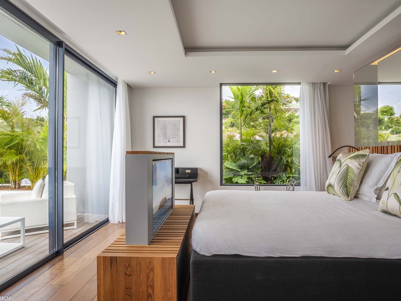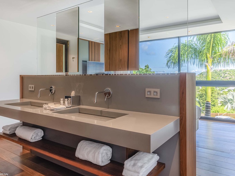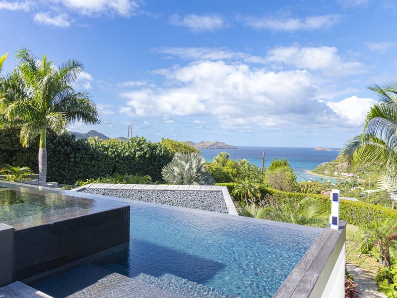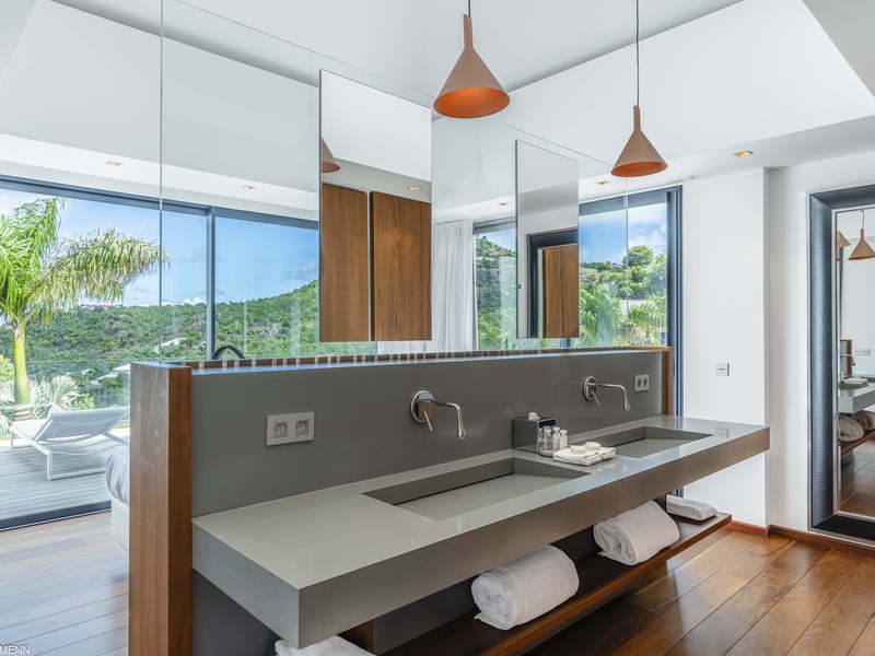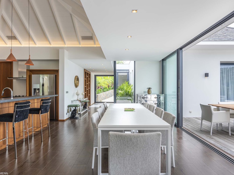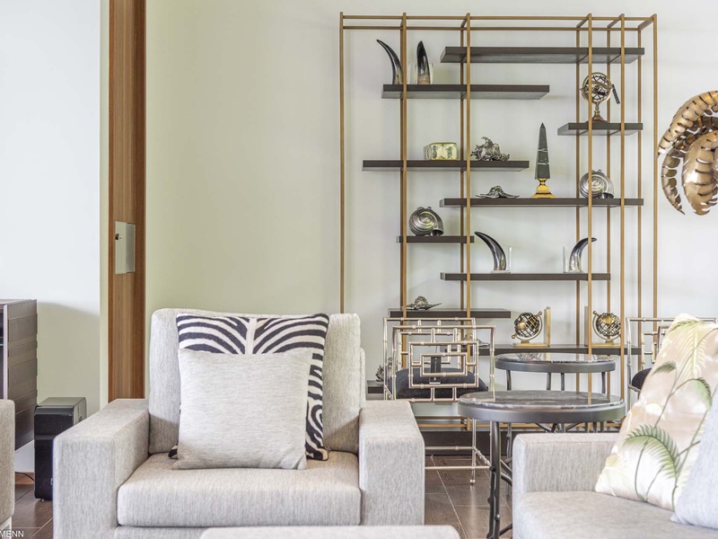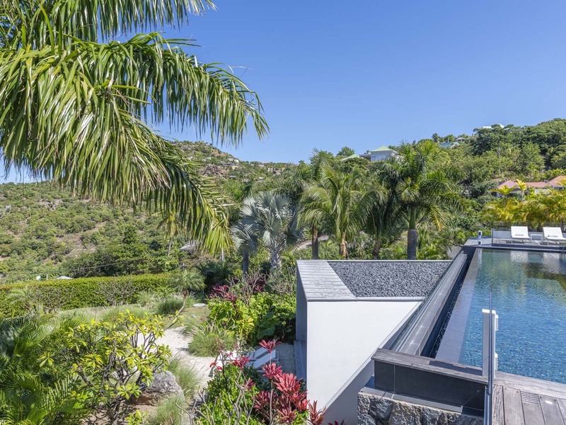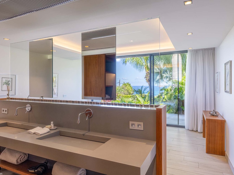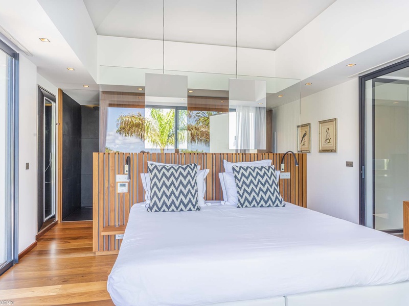 The interiors of Golden Palm Villa are stunning, with a clean and simple design that keeps the focus on the marvelous views. The décor is a fun, modern Palm Beach style, with contemporary neutral-colored furnishings contrasted by warm natural woo...