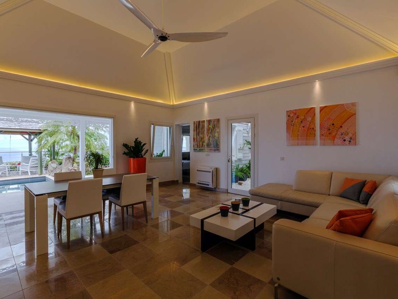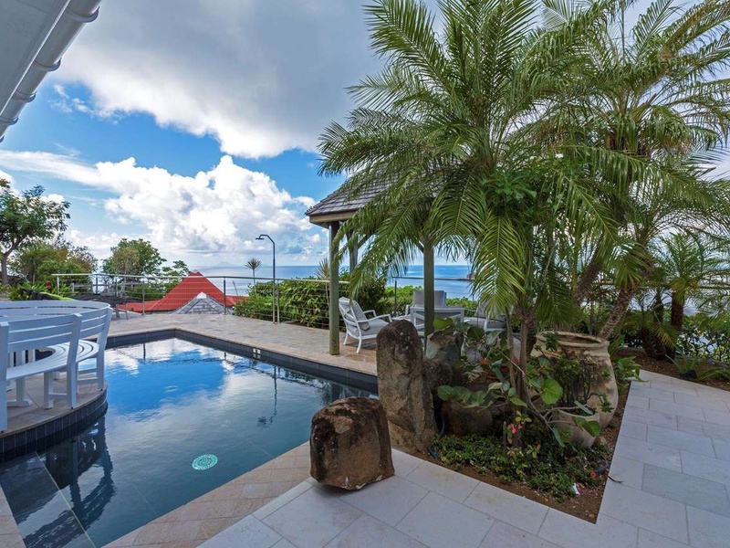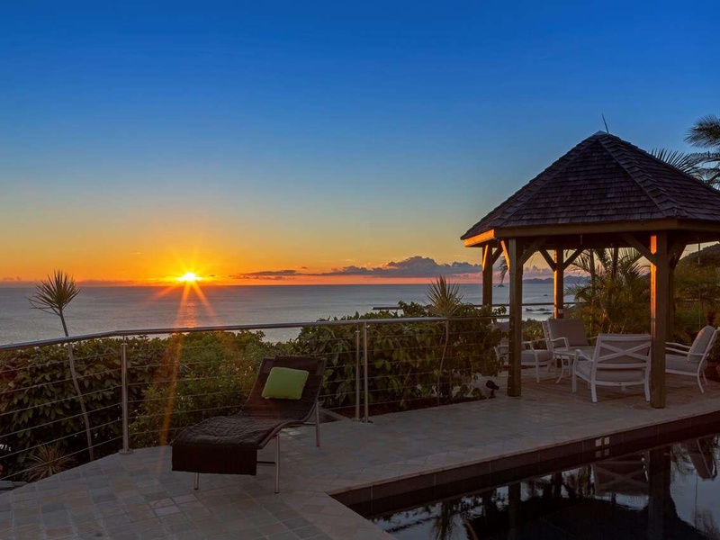 Nestled on the leeward side of the island, this villa enjoys stunning ocean and sunset views.
