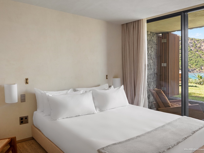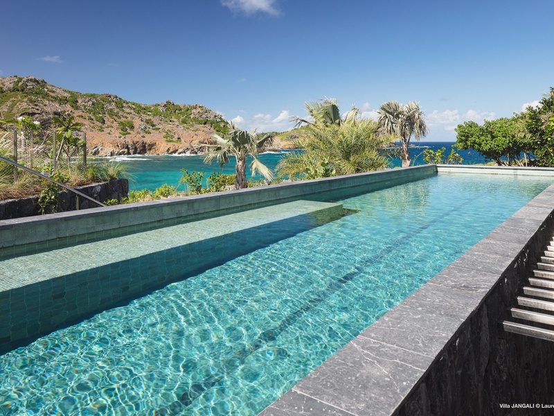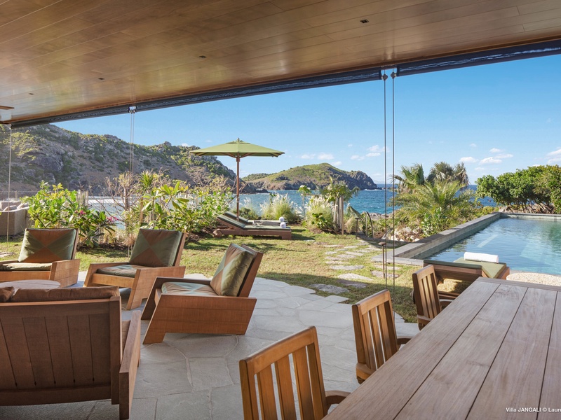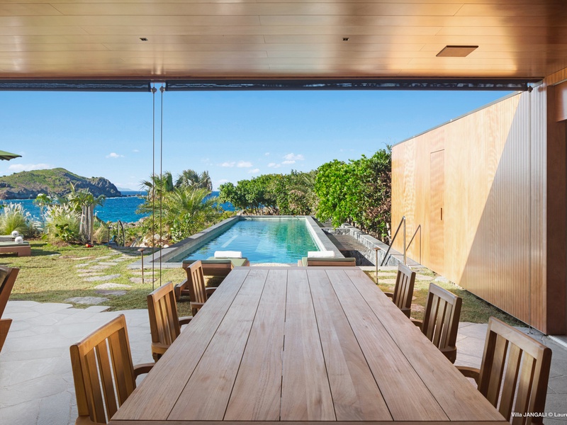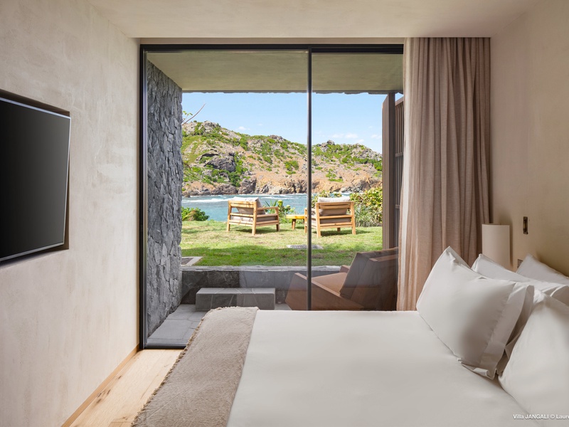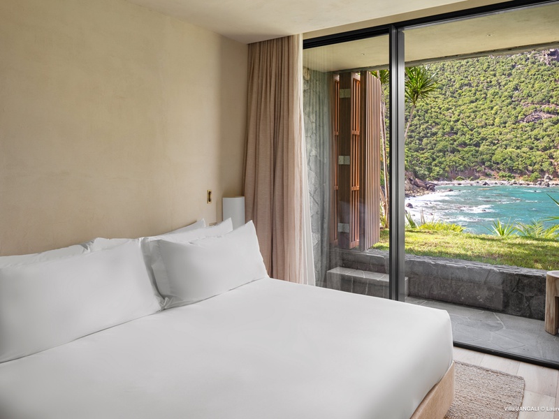A stunning fusion of elegance and tranquility, nestled between land and sea, Domaine de Jangali (villa code: WV JAN) is a serene oasis perched just above the secluded beach of Petite Anse and within walking distance of Flamands and Colombier beaches. This villa seamlessly blends modern architecture, inspired by the island’s traditional style, with noble materials such as fine woods, blue rock, and bespoke furnishings.