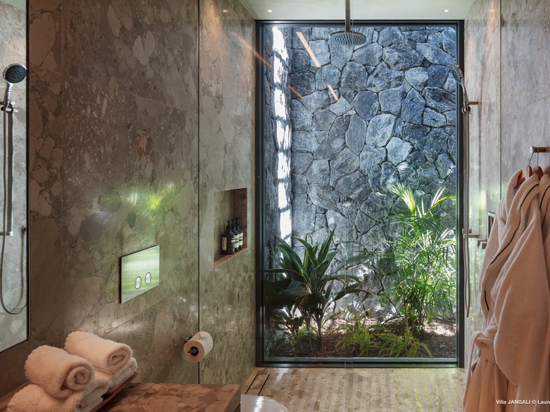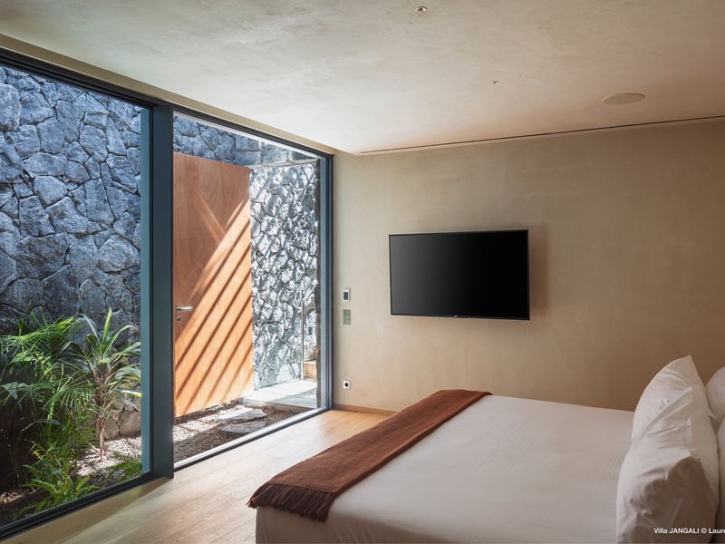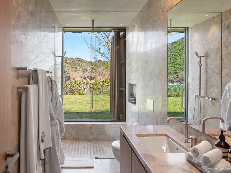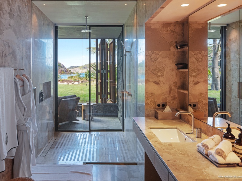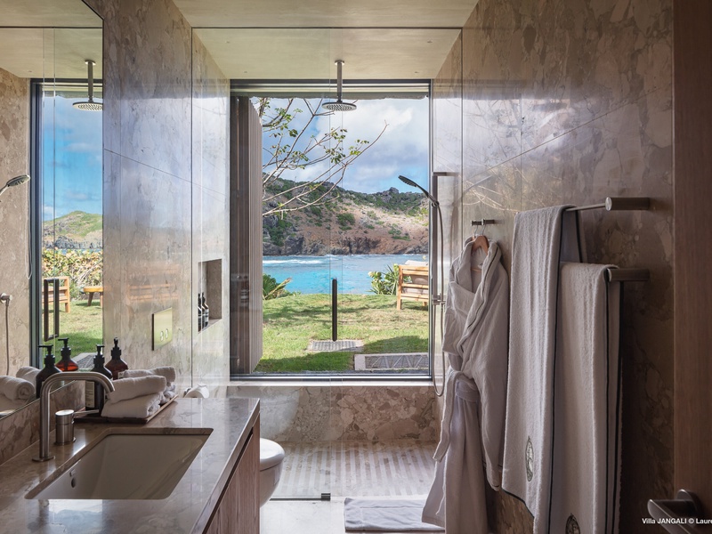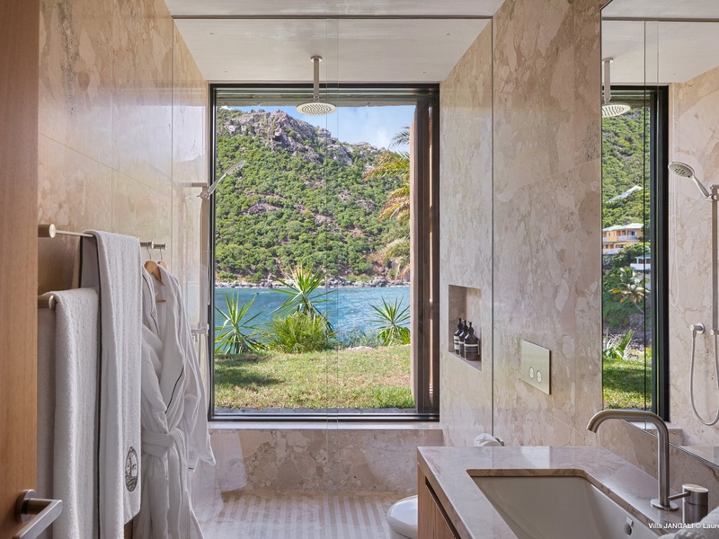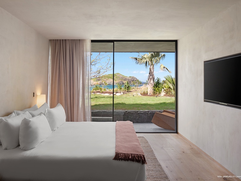 A stunning fusion of elegance and tranquility, nestled between land and sea, Domaine de Jangali (villa code: WV JAN) is a serene oasis perched just above the secluded beach of Petite Anse and within walking distance of Flamands and Colombier beaches. This villa seamlessly blends modern architecture, inspired by the island’s traditional style, with noble materials such as fine woods, blue rock, and bespoke furnishings.