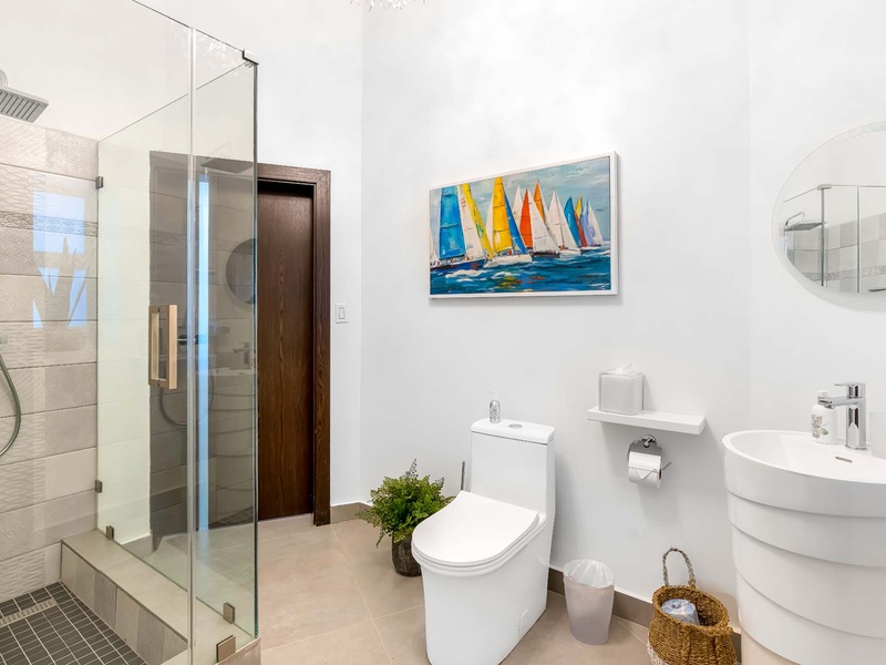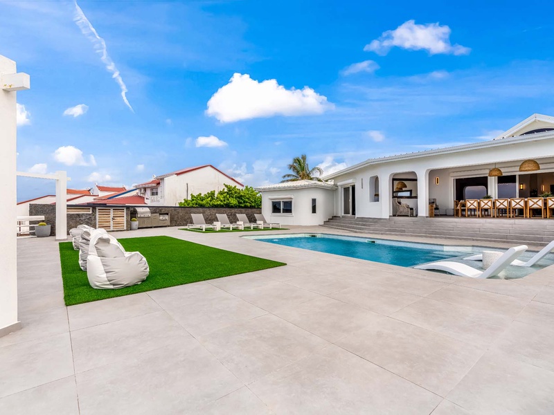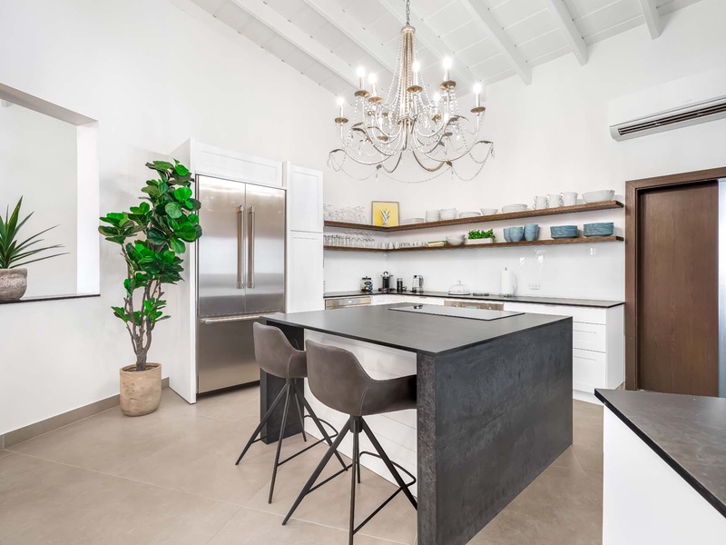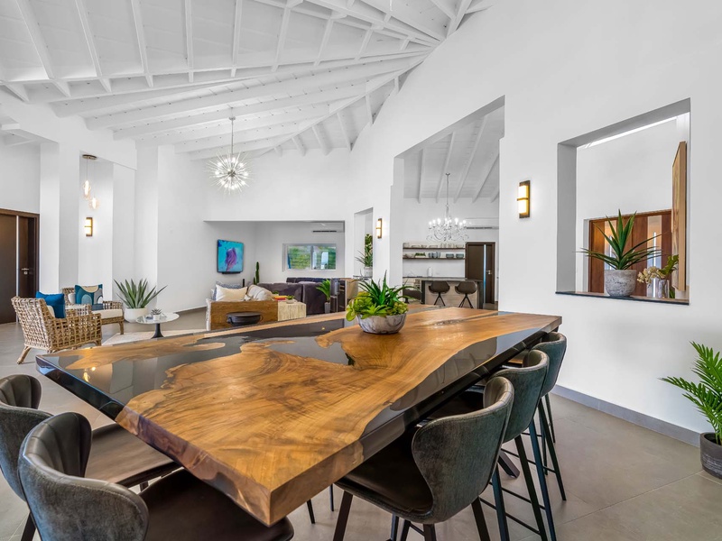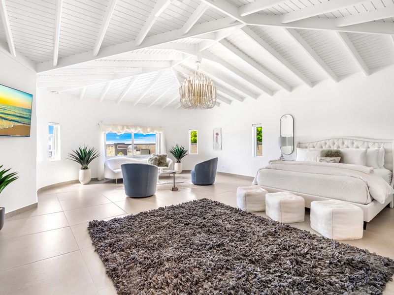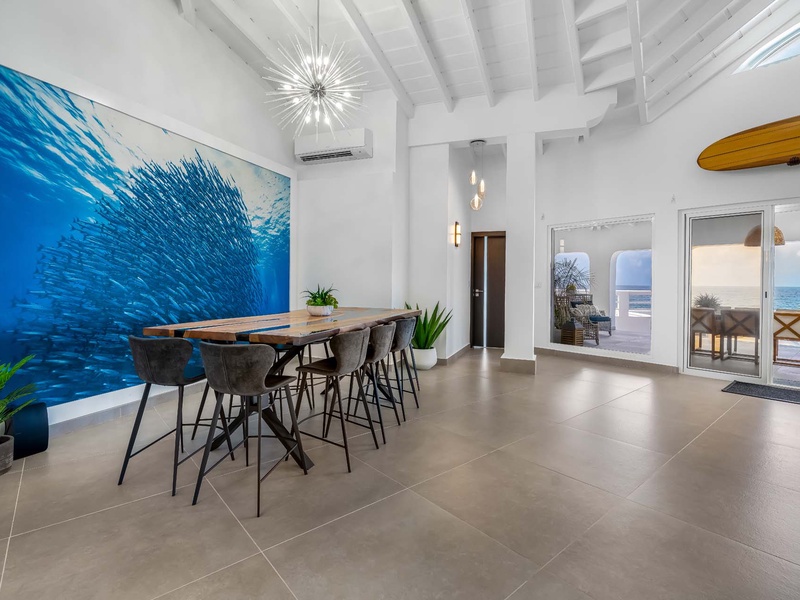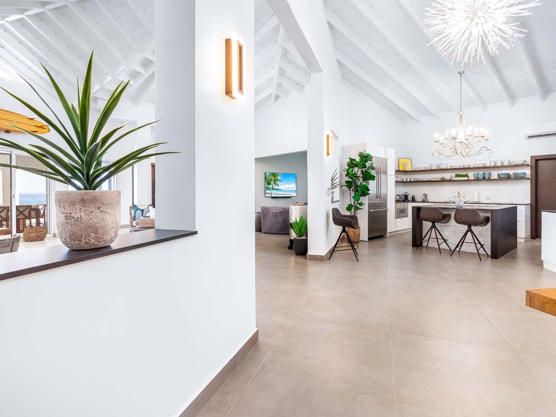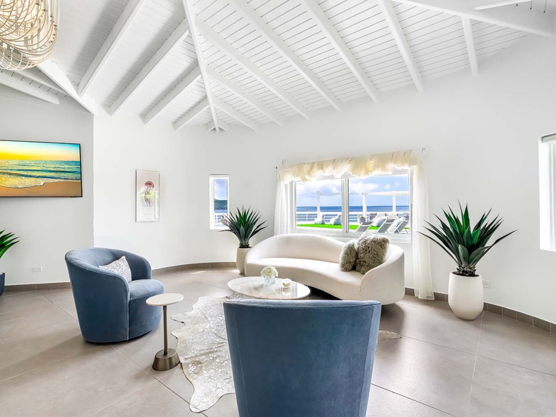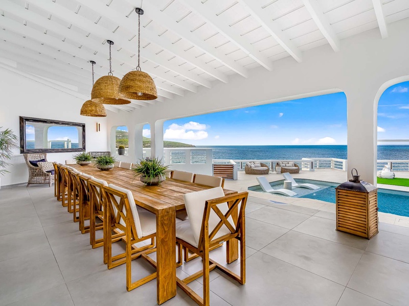 Experience elegance and opulence during your stay at this expansive villa located atop the Pelican peninsula. You'll be treated to breathtaking vistas of majestic mountains and the expansive waters of both the Caribbean and the Atlantic oceans. The villa also affords glimpses of neighboring Caribbean islands, St. Eustatius and Saba.