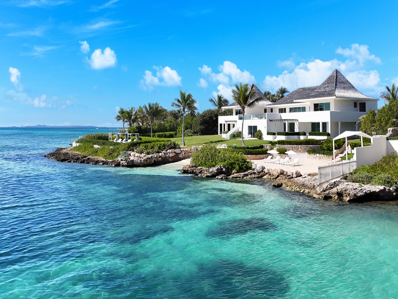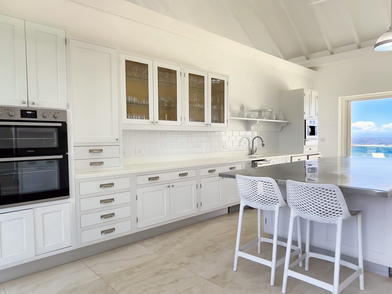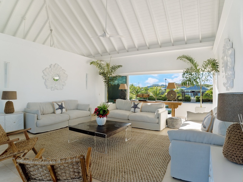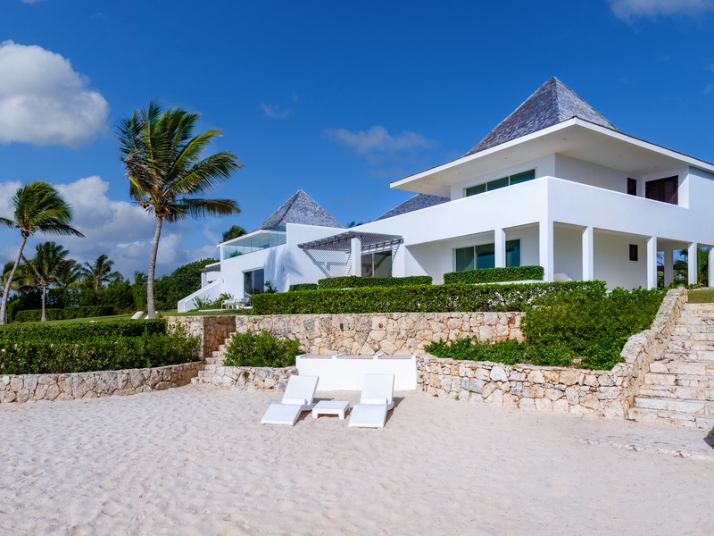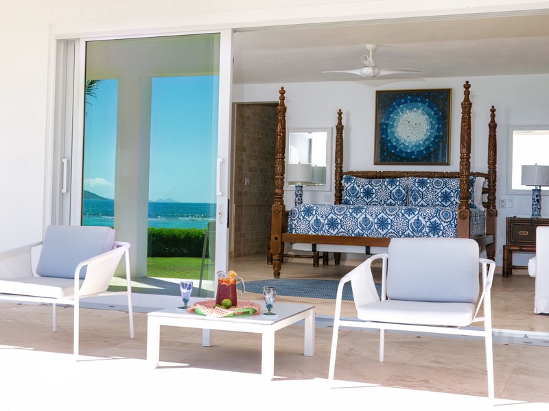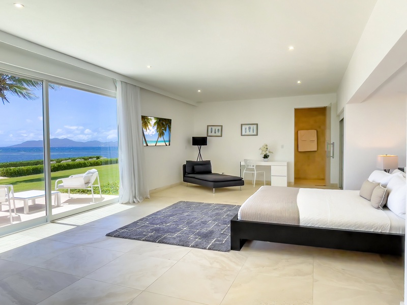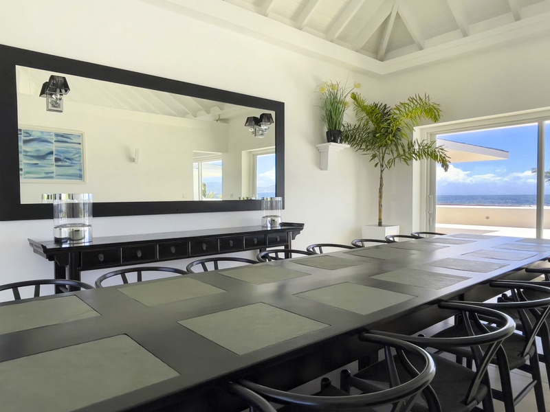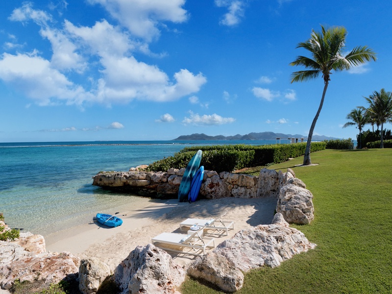 Welcome to Villa Le Bleu (villa code: AXA BLE), a luxurious 11-bedroom tropical estate located on the island of Anguilla in the British West Indies. Set on two lush acres, the property includes a grand main house and a charming guesthouse called Petite Le Bleu. This stunning villa boasts beautifully designed master suites, each with serene views of St. Martin and St. Barts across the sparkling Caribbean Sea.