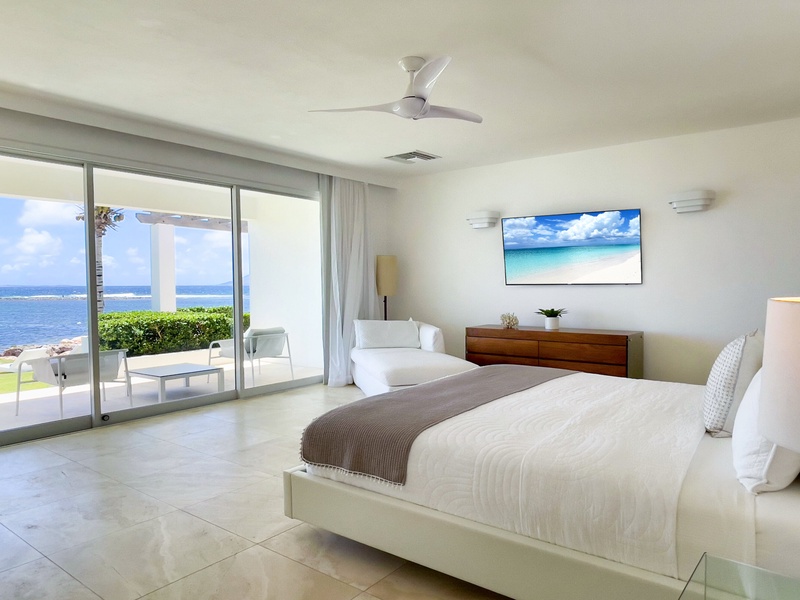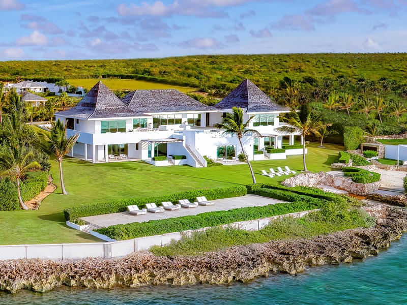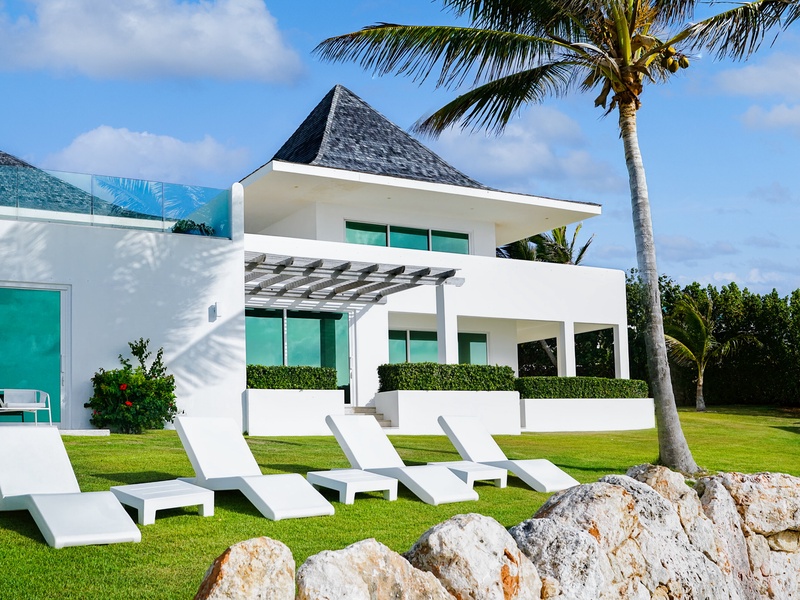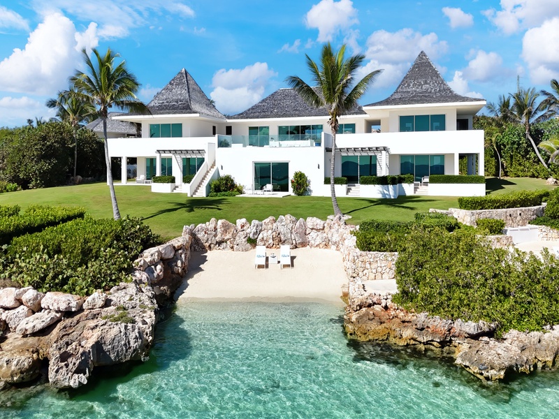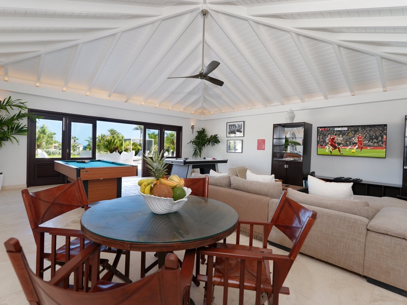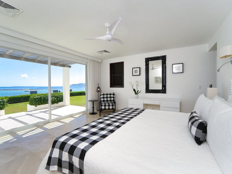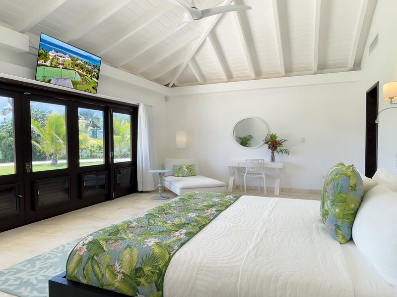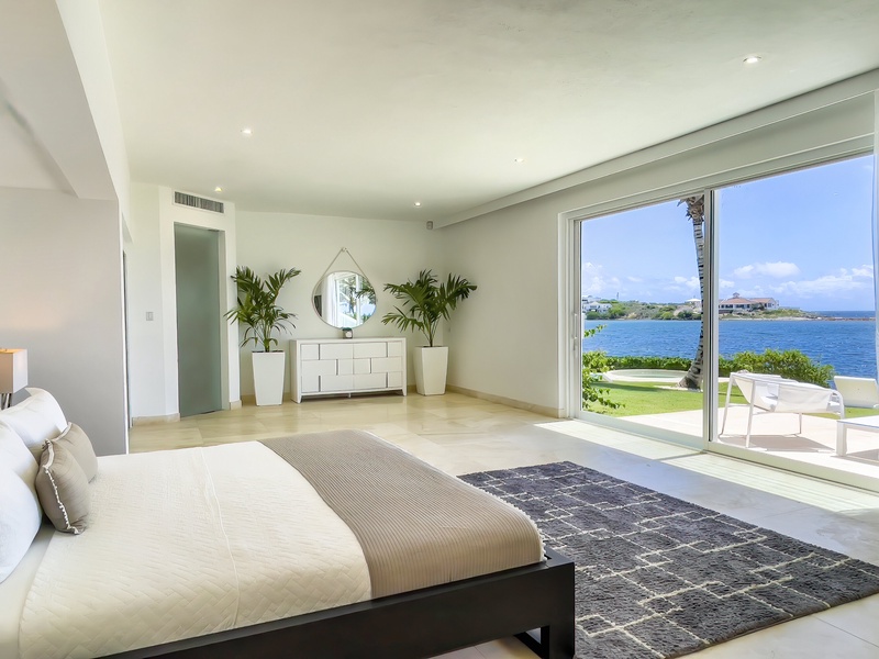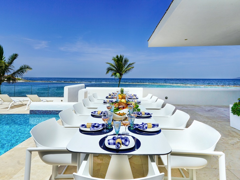 Welcome to Villa Le Bleu (villa code: AXA BLE), a luxurious 11-bedroom tropical estate located on the island of Anguilla in the British West Indies. Set on two lush acres, the property includes a grand main house and a charming guesthouse called Petite Le Bleu. This stunning villa boasts beautifully designed master suites, each with serene views of St. Martin and St. Barts across the sparkling Caribbean Sea.