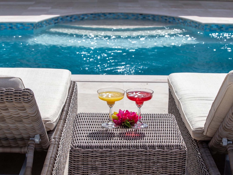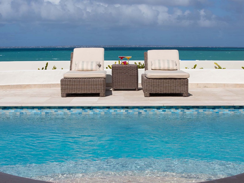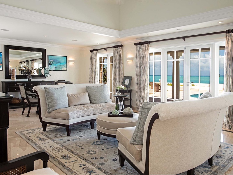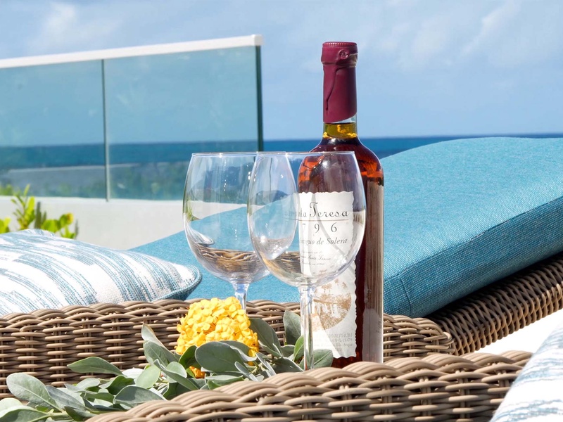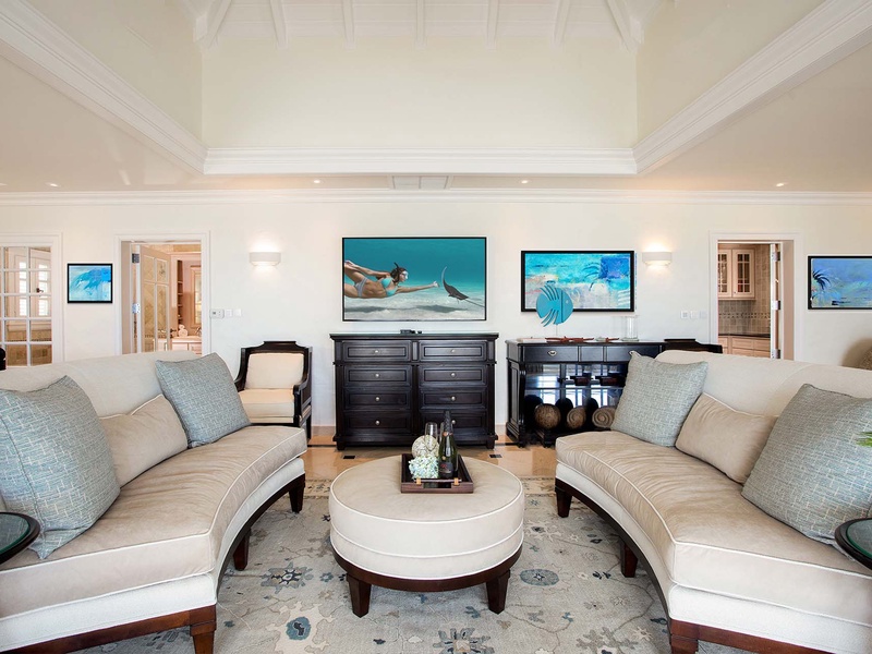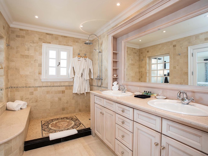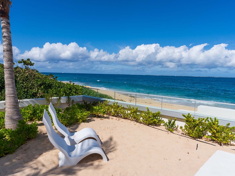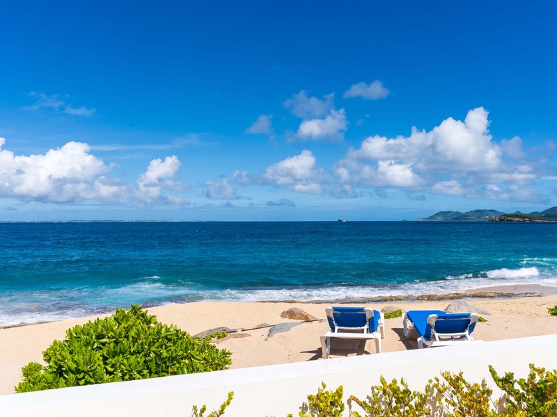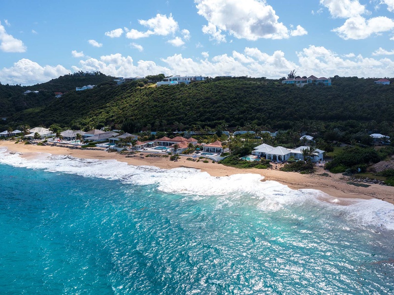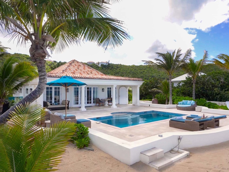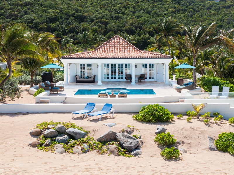 The tropical turquoise entrance gate opens to a palm tree-lined driveway leading to the villa. A marble staircase takes you to the terrace with stunning sea views. The suite-designed villa, Les Palmiers, features air-conditioned living spaces with ocean views, a plush king-size bed with luxurious linens, and a spacious ensuite ...
