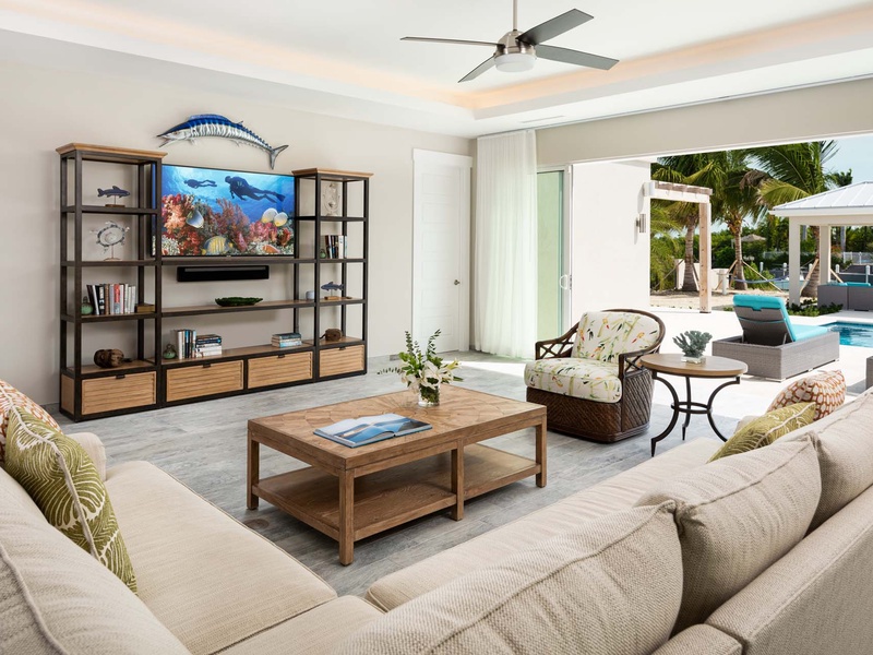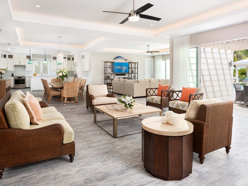 Inside, the villa is light airy and open plan and is designed to enable guests to make the most of the Leeward lifestyle, with a large, open plan living area. This includes ...