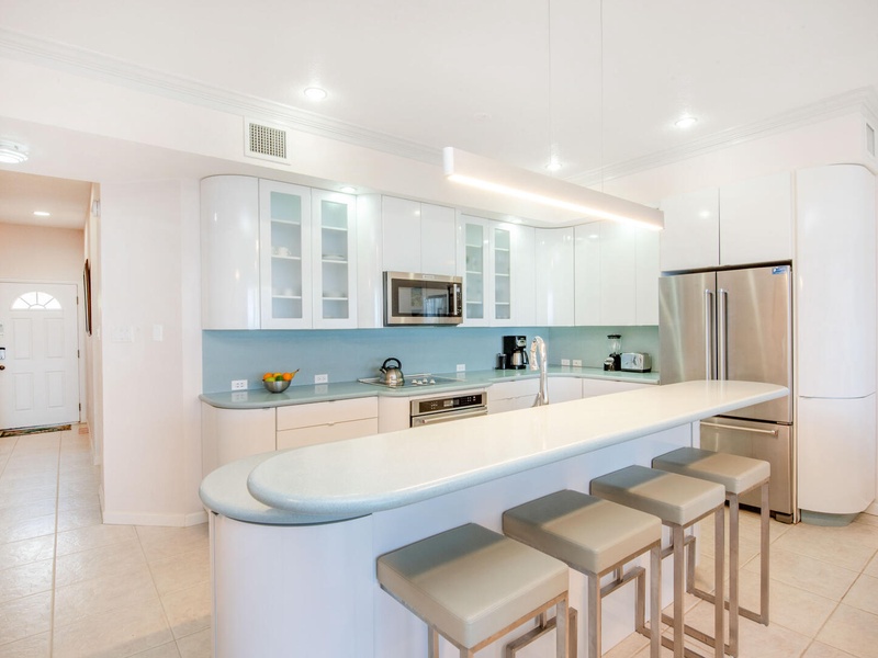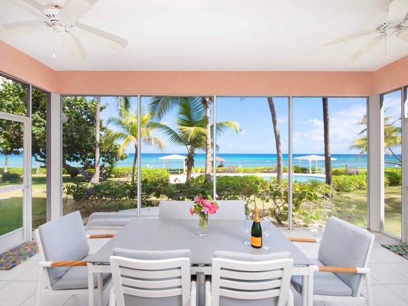 Lush tropical landscaping surrounds this small sliver of paradise with 240 feet of natural beachfront, sweeping panoramic views, and a protected coral...