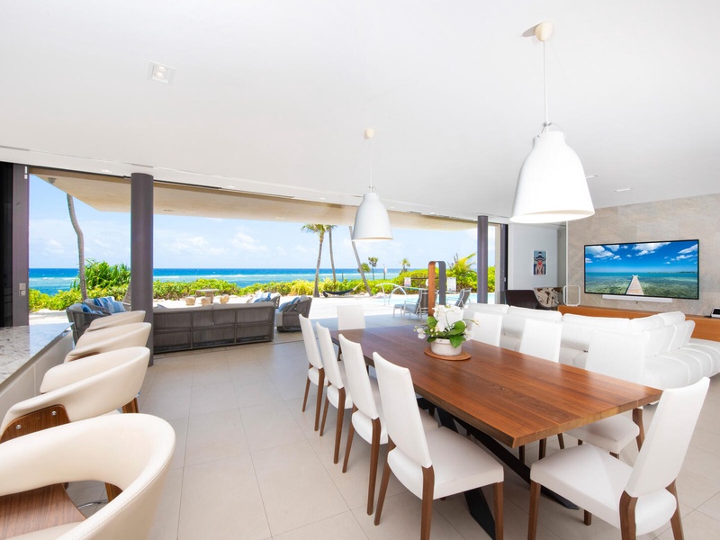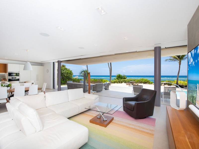 Welcome to Olympus, a landmark oceanfront estate in Rum Point. Recently acquired by new owners, this striking, architect-designed villa sits on an elevated shoreline, offering panoramic views of reef-protected waters and direct access to world-class snorkeling. With a bold abstract design, a three-level layout, and seamless indoor-outdoor living, Olympus is a masterpiece of modern island luxury.