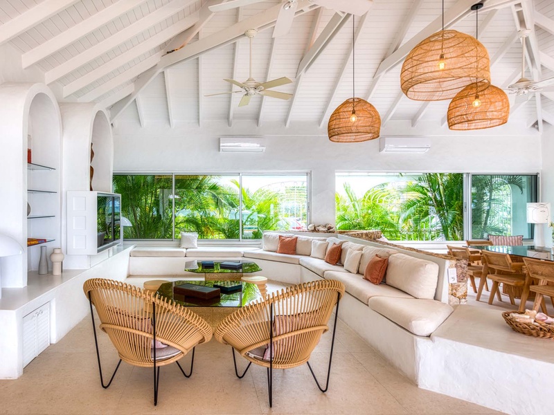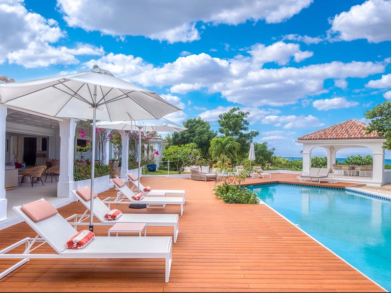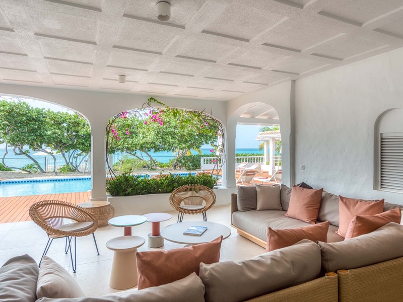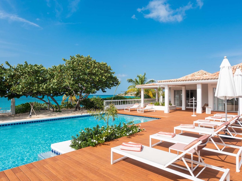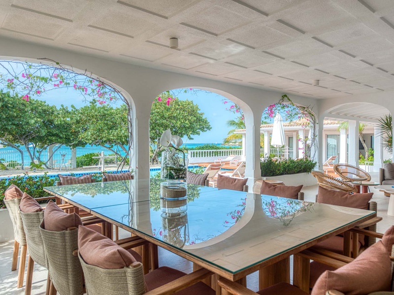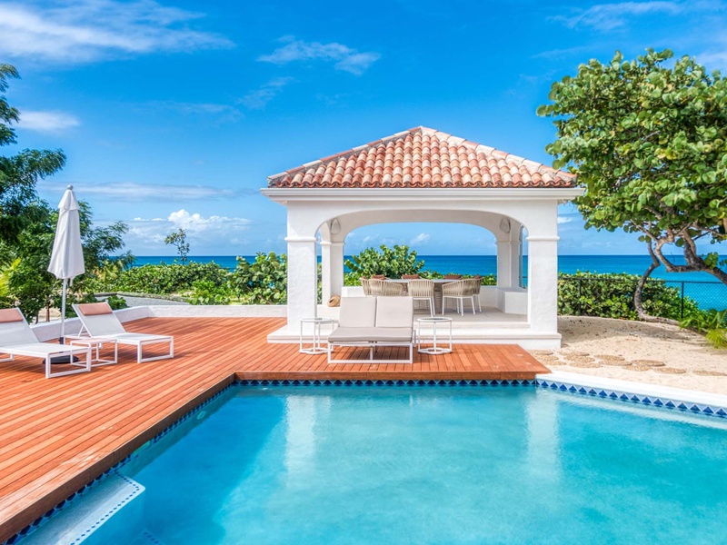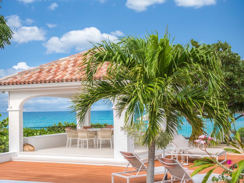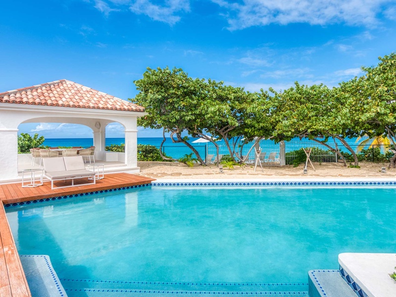Beautiful Villa La Riviera (villa code: SXM DAY) is a fabulous 5+1 bedroom St. Martin villa rental located on sublime Plum Bay Beach, with its beautiful sunsets and crystal clear water. The villa has a delightful outdoor terrace with large pool and poolside gazebo overlooking the beach and your very own tennis court on the beach! The spacious living and dining area and large adjoining gourmet kitchen open out to the terrace and enjoy the beautiful ocean view.