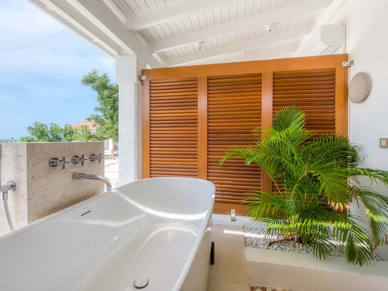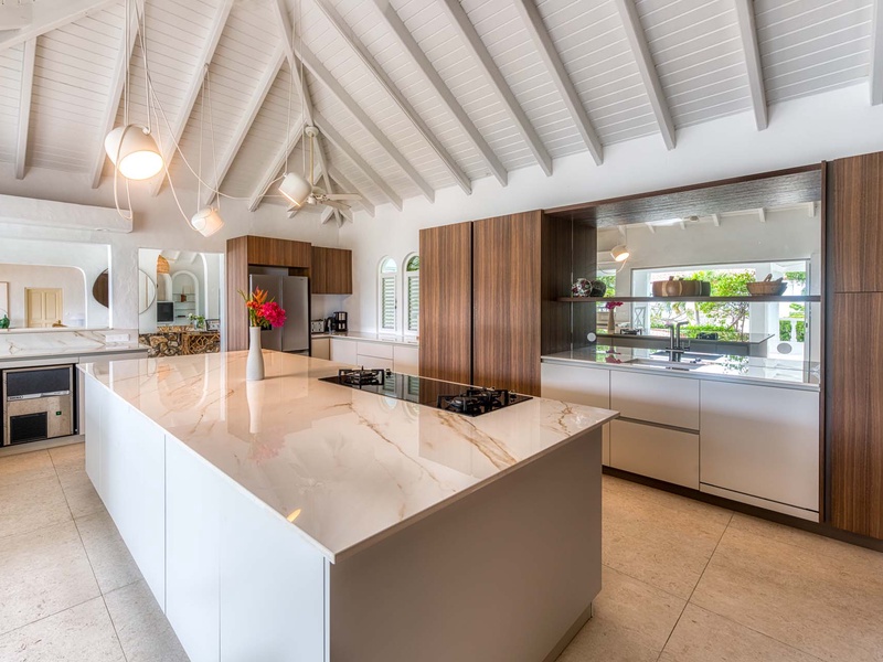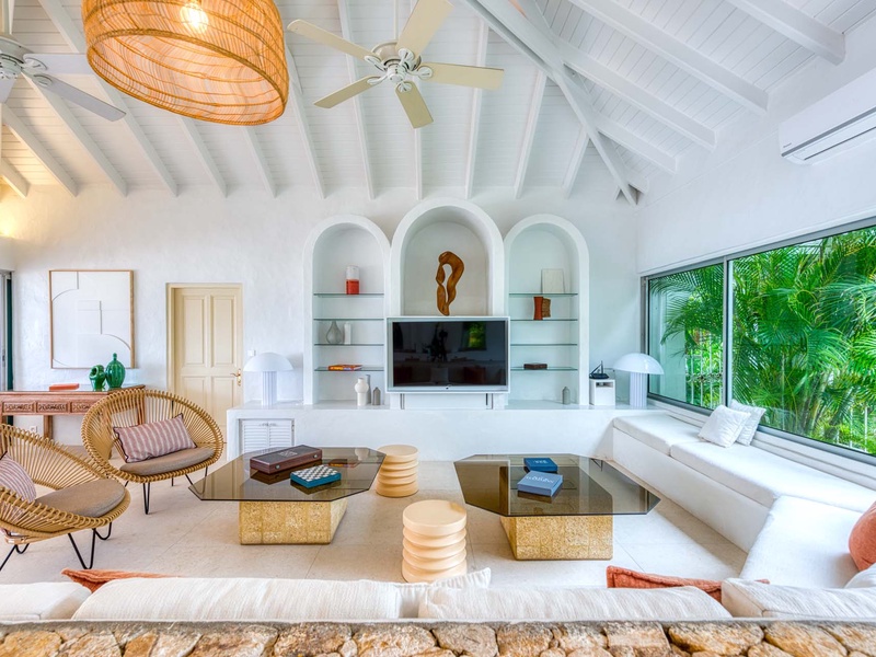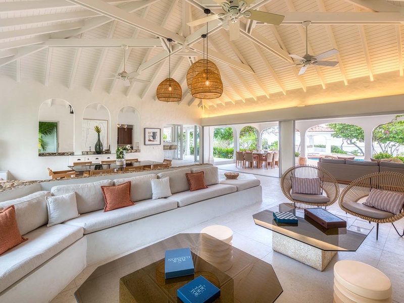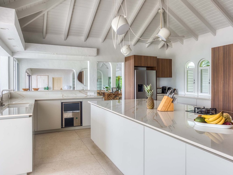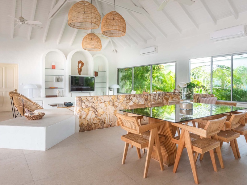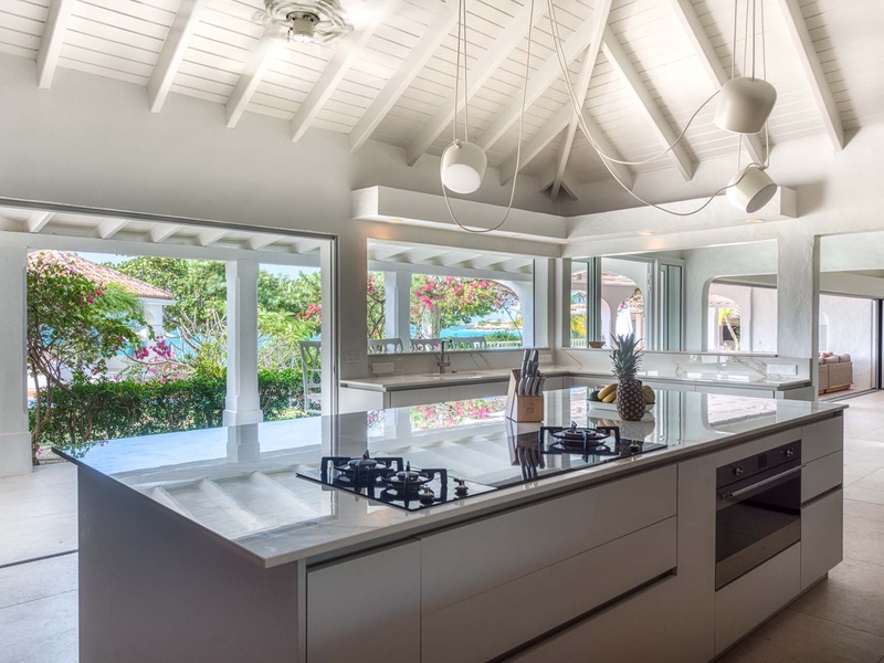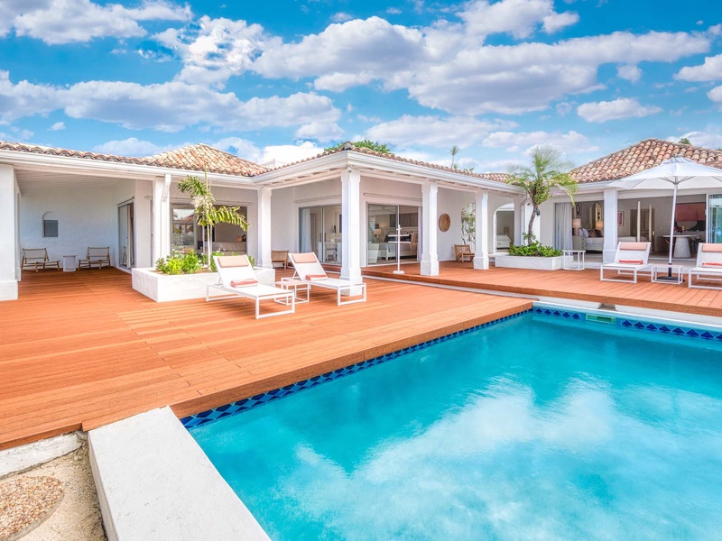 Beautiful Villa La Riviera (villa code: SXM DAY) is a fabulous 5+1 bedroom St. Martin villa rental located on sublime Plum Bay Beach, with its beautiful sunsets and crystal clear water. The villa has a delightful outdoor terrace with large pool and poolside gazebo overlooking the beach and your very own tennis court on the beach! The spacious living and dining area and large adjoining gourmet kitchen open out to the terrace and enjoy the beautiful ocean view.