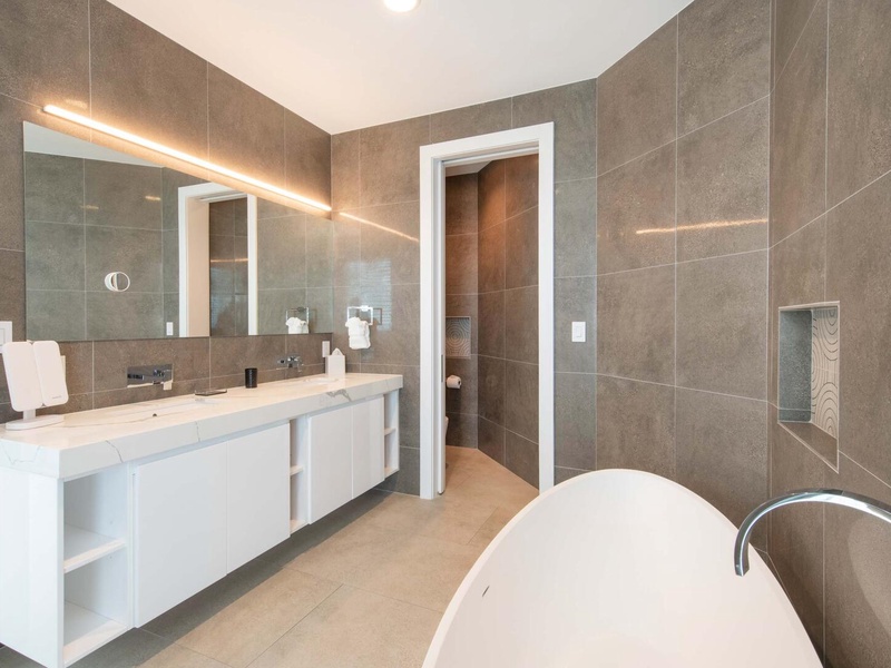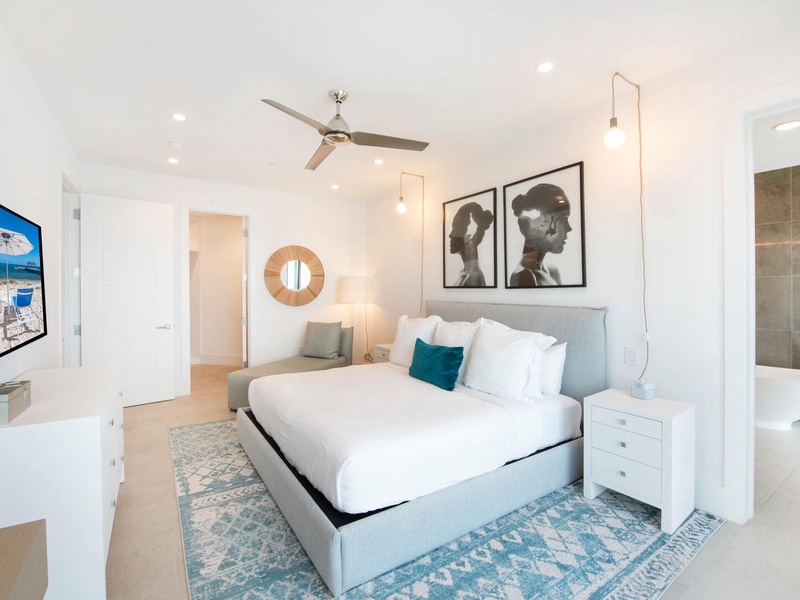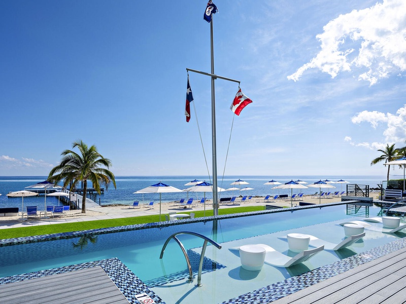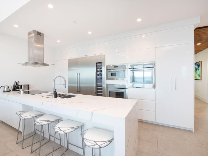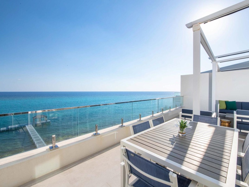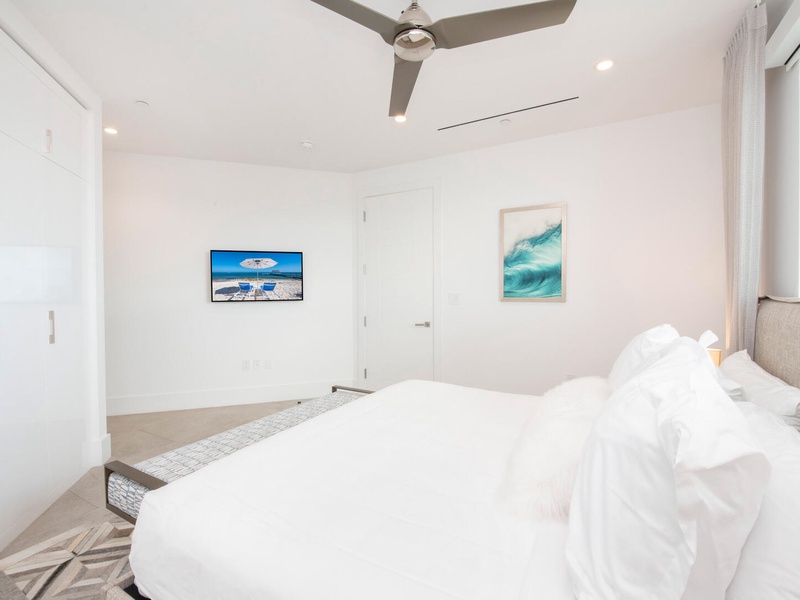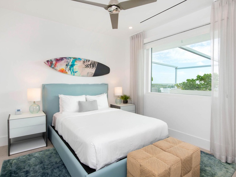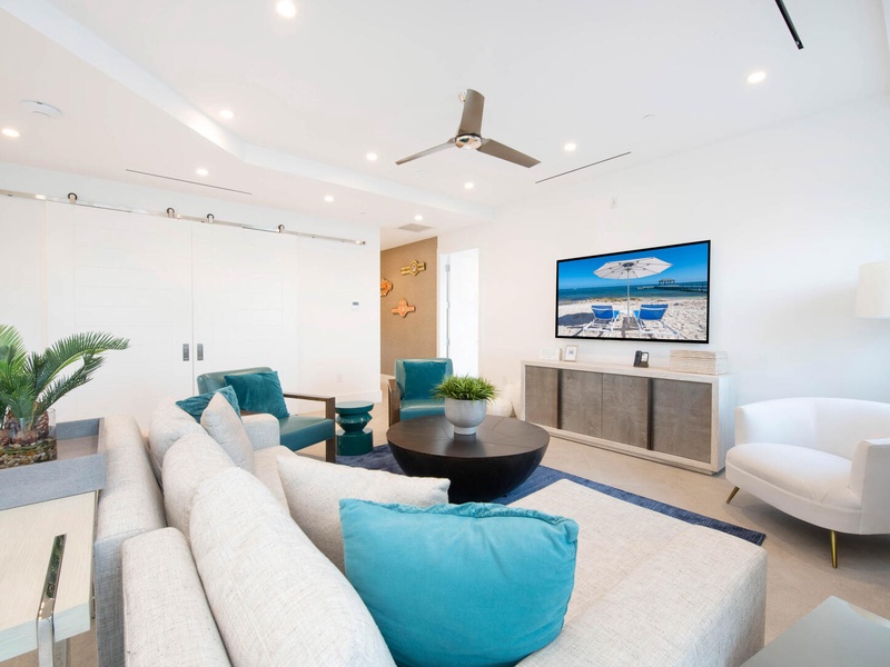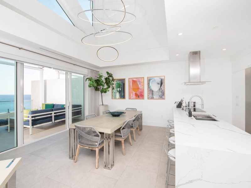 All Rum Point Resort condos feature sleek finishes, designer decor, and an open-concept layout maximizing space, natural light, and stunning ocean views. All the comforts of home are included in this 2,620 sq. ft. penthouse condo including gourmet kitchen appliances, quartz countertops, SmartTVs throughout, and a private open-air oceanfront balcony.