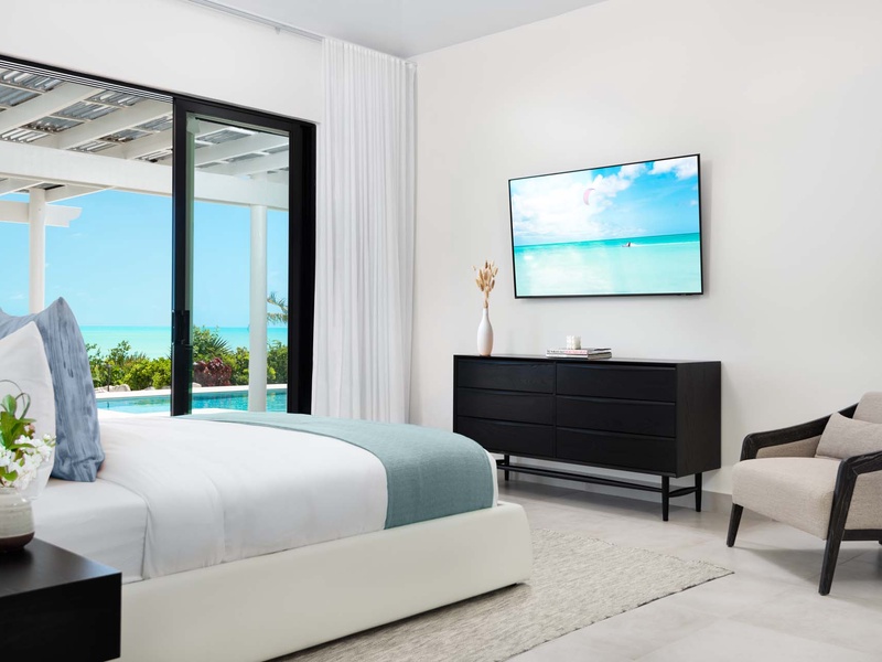 Embrace a Caribbean waterfront vacation at Villa Sandy Shore (villa code: TC FLC), a contemporary 4-bedroom villa located on the Turtle Tail Peninsula, Providenciales. Within a short walk of the beach and a short drive from restaurants and shopping, this is a dreamy locale for those seeking a beachfront getaway in Turks and Caicos.