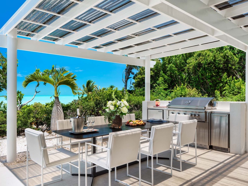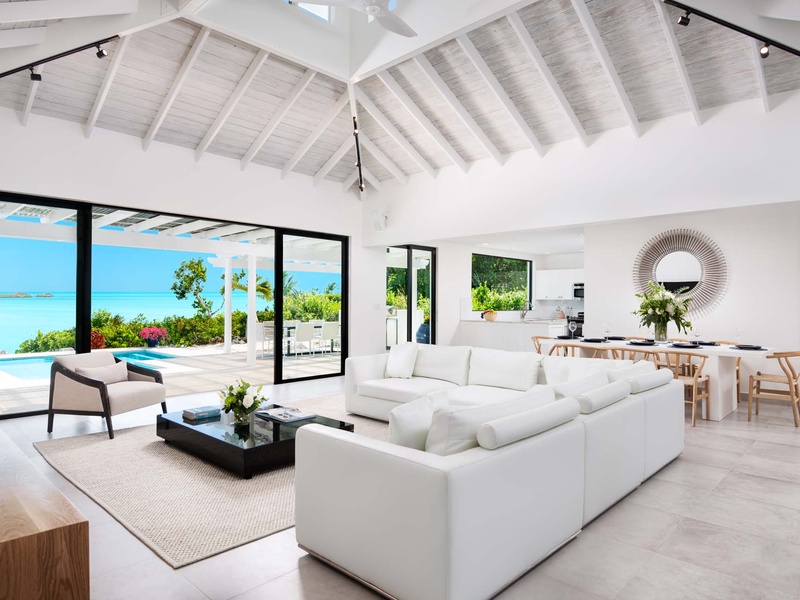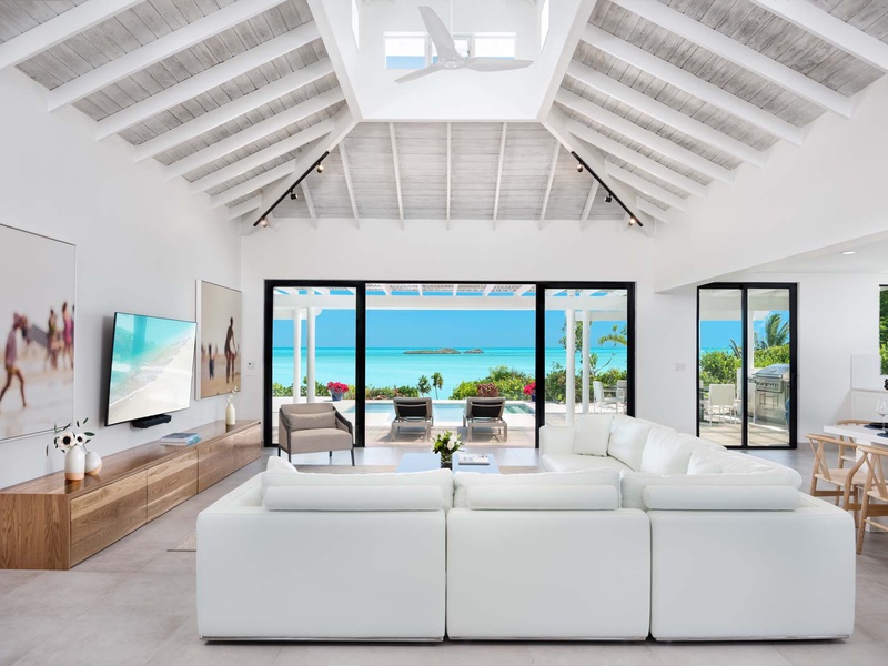 Classic Caribbean style meets the latest luxuries inside this beachfront villa in Provo, with airy living spaces and charming furnishings. Vaulted ceilings c...