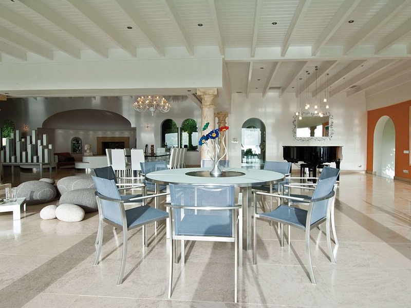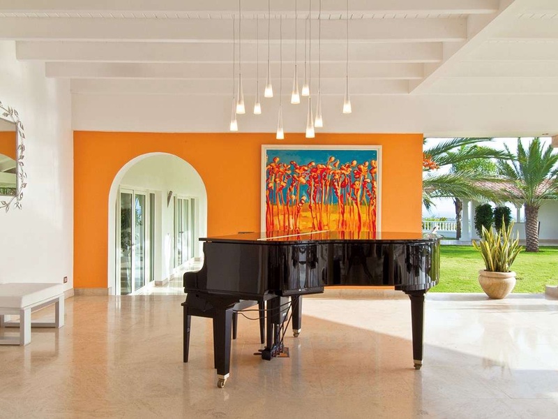 Villa Sandyline (villa code: PIE SAN), is a 6 +1-bedroom villa located in Hillside/Terres Basses within a short walk of the beach and minutes from shopping. Overlooking the Caribbean Sea amid verdurous gardens, this hillside, fully air-conditioned villa presents a blend of Provencal architecture with Philippe Starck contemporary interiors.