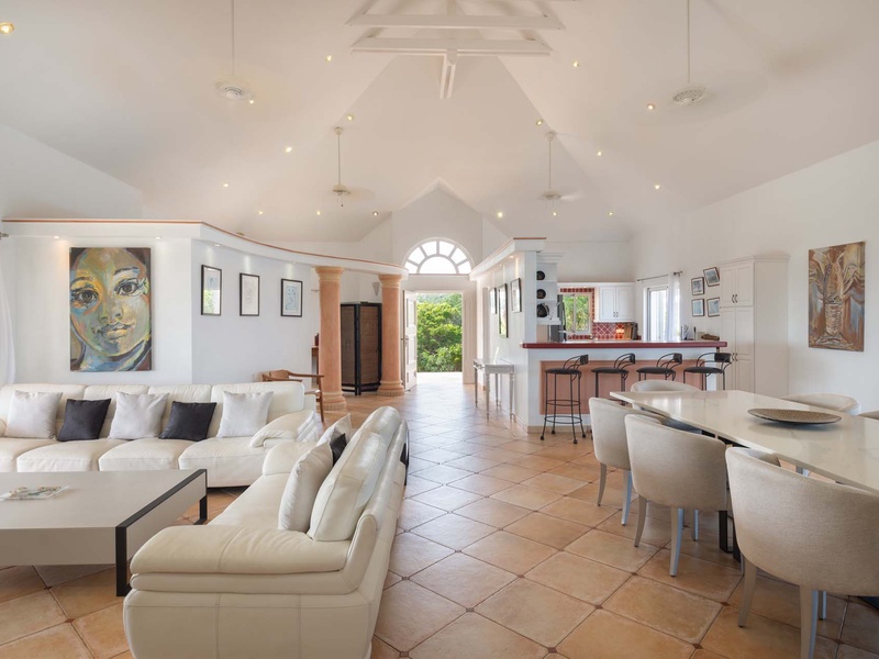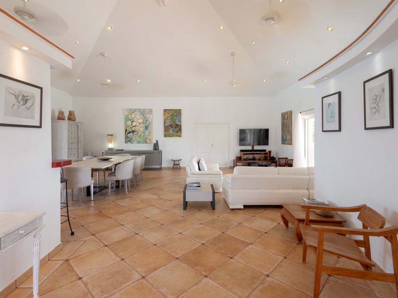 Inside, open and airy interiors are awash with island charms. Natural light illuminates the stylish open-plan design and Indonesian-inspired décor. Cool terracotta tiles and artwork adorning the walls add pops of color and contrast with th...