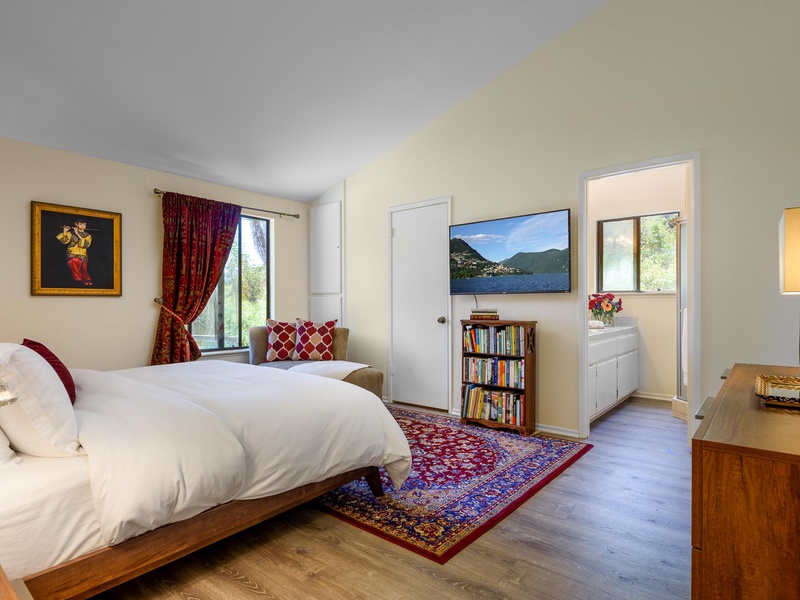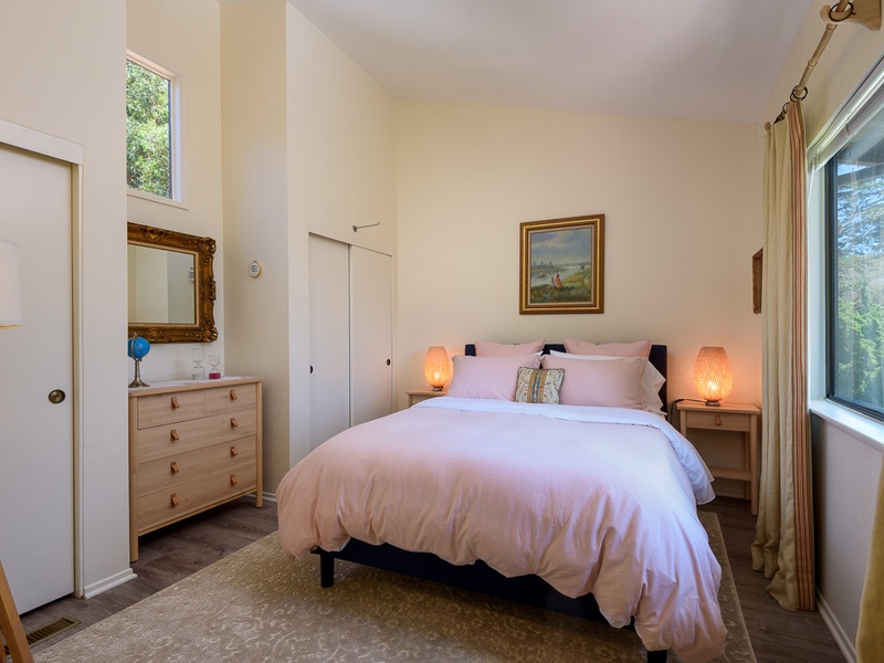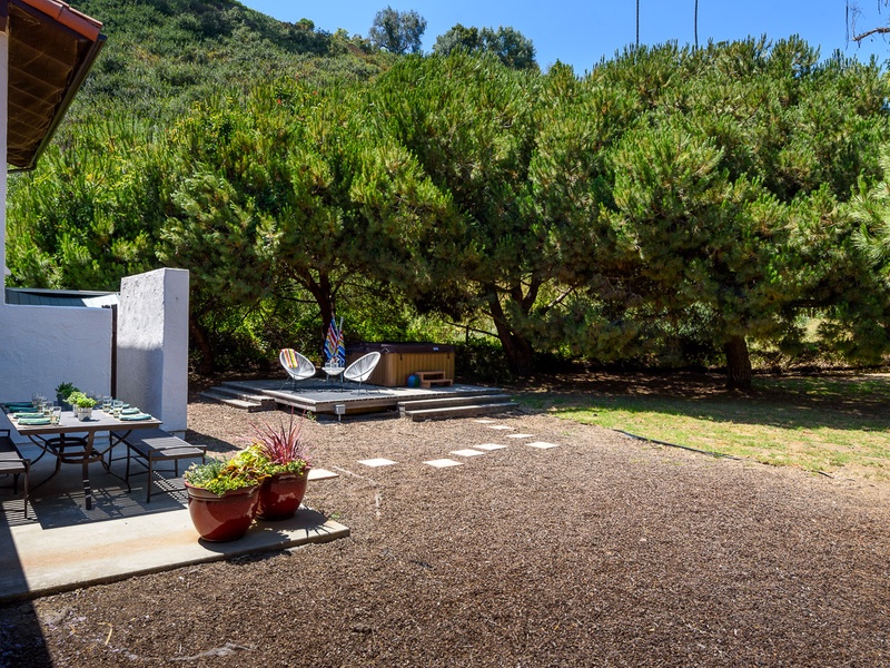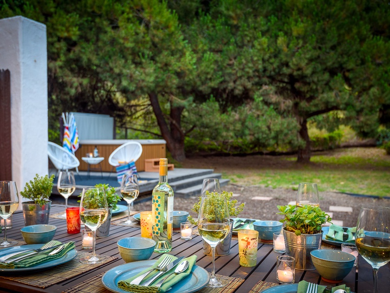 If you’re craving sprawling privacy surrounded by nature near the beach, look no further. Located on 1 acre of private land is Sea Change directly across from Hendry’s Beach. Walk across the street, take a dip in the ocean, then enjoy a bite to eat and a cocktail at the Boathouse, and watch the sun set over the Pacific.