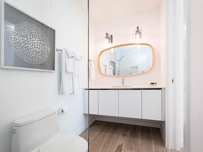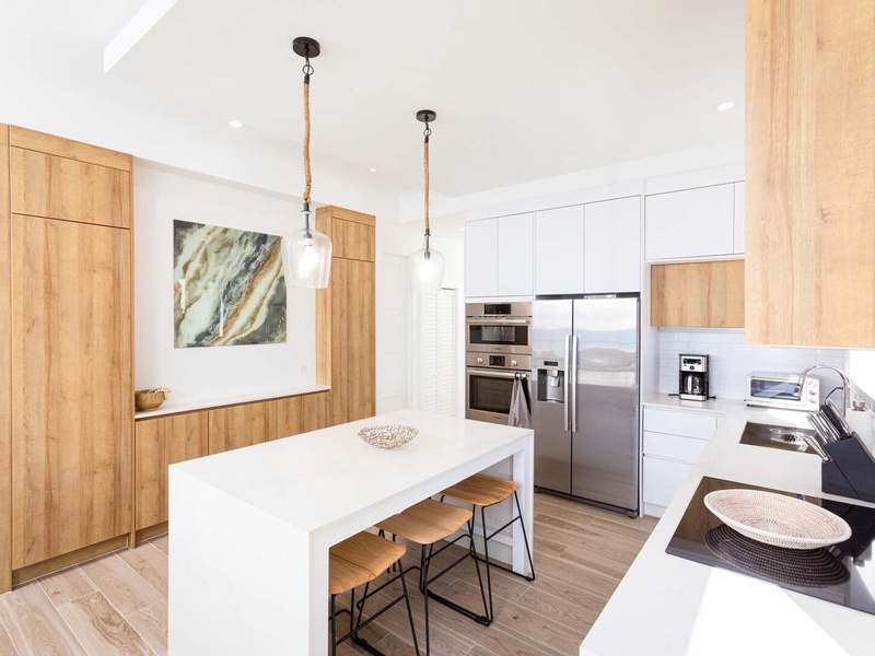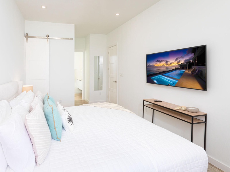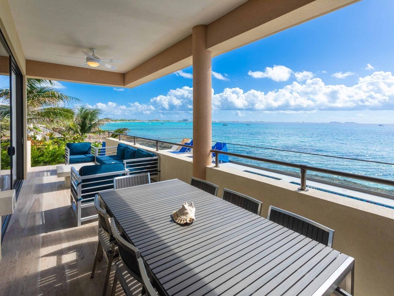 Built into the raw ironshore, SeaDreams lacks a sandy beachfront. The property does have a walkway to the ocean with railed stairs for water access on days with calm seas. Ideal for experienced swimmers with pool shoes or snorkel fins for foot protection. Otherwise, a better beach experience awaits a sh...