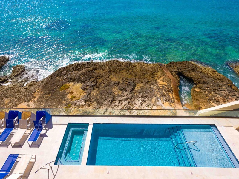 Built into the raw ironshore, SeaDreams lacks a sandy beachfront. The property does have a walkway to the ocean with railed stairs for water access on days with calm seas. Ideal for experienced swimmers with pool shoes or snorkel fins for foot protection. Otherwise, a better beach experience awaits ...