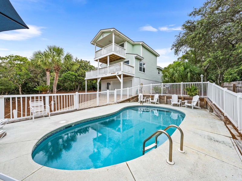 - Private pool with fenced-in pool deck with lounge seating (pool heating not available)