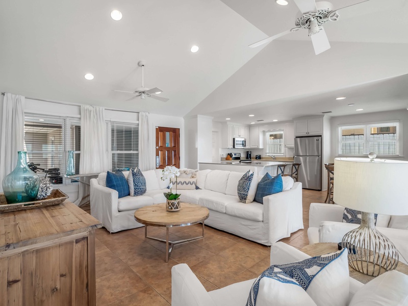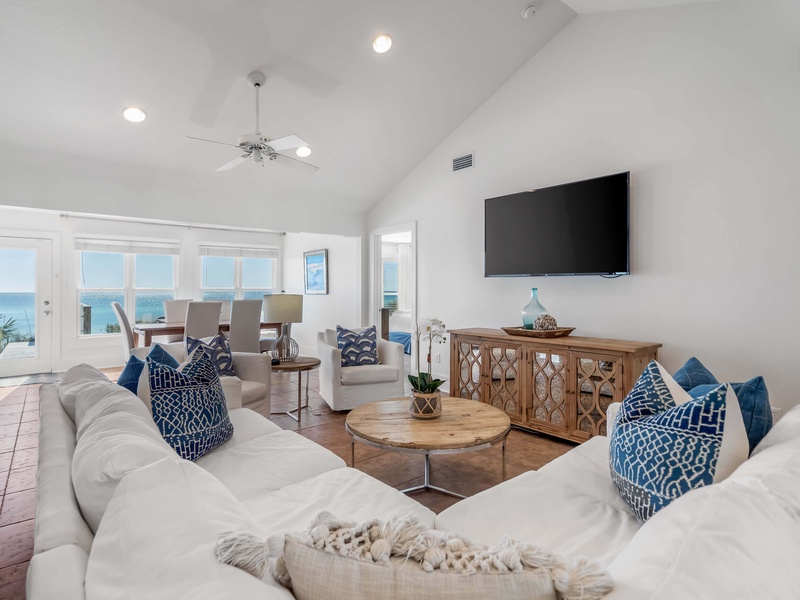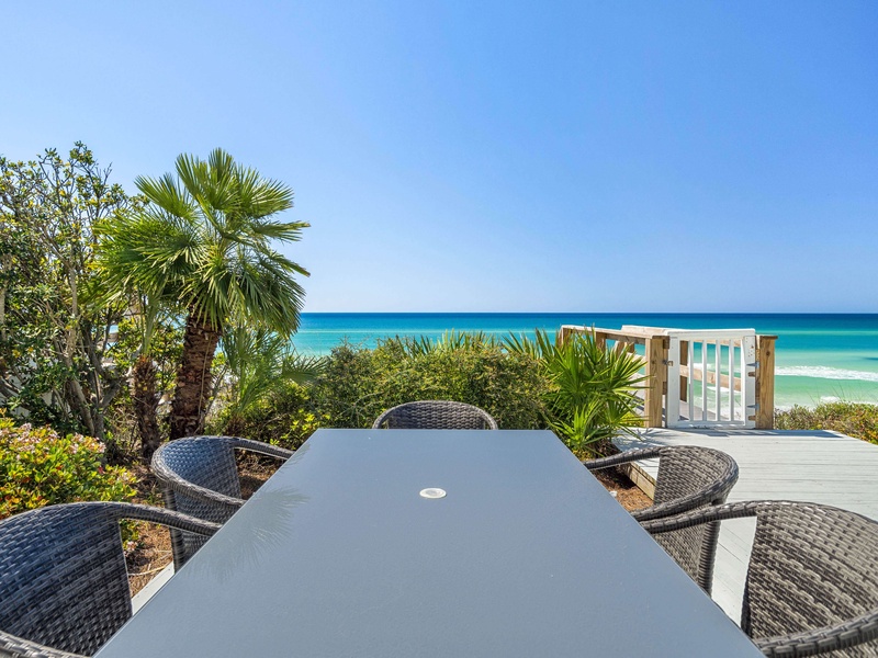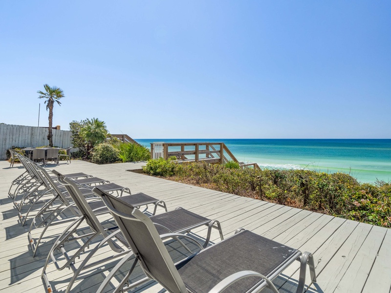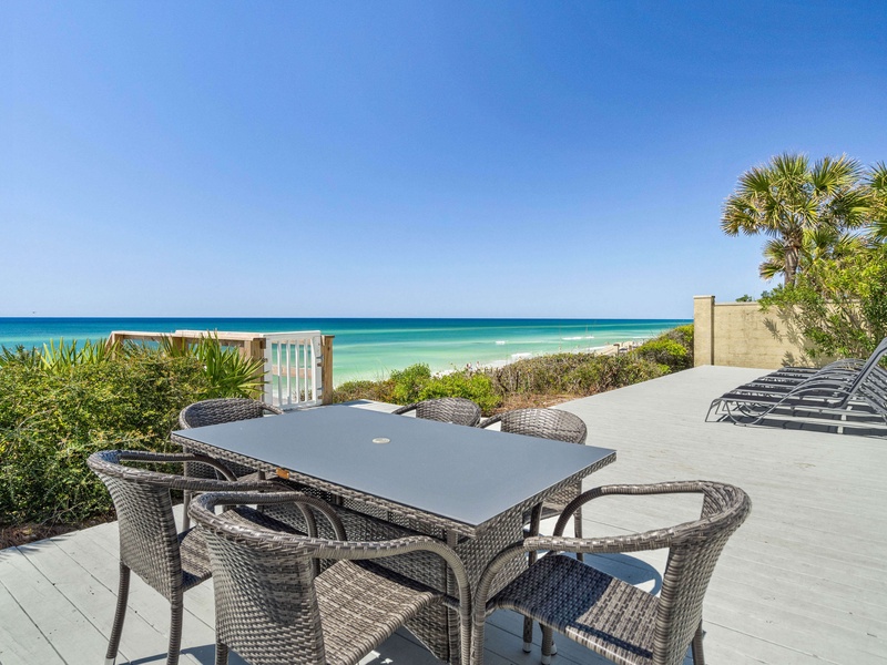 Welcome to She Sells Seashells, a comfortable one level Gulf front retreat with panoramic water views and direct private beach access. Just a quick bike ride from Seaside and steps from dining, this pet friendly home offers easy coastal living with comfort, convenience, and unbeatable scenery.