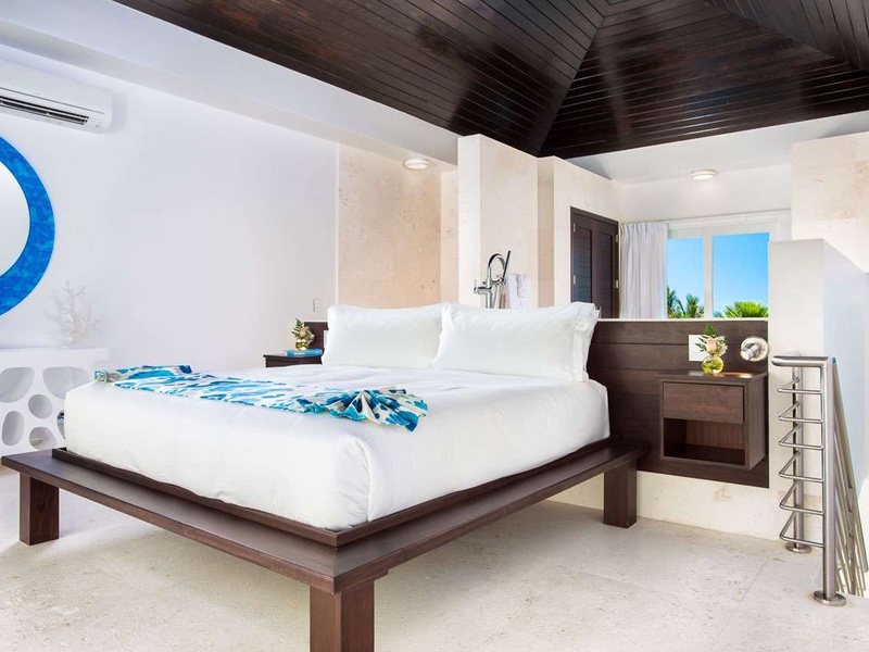 Spread over two stories, this contemporary villa has a tasteful open-plan design. Minimalist décor contrasts with vibrant artwork, and both levels enjoy stunning views of the ocean, bringing the outside in.