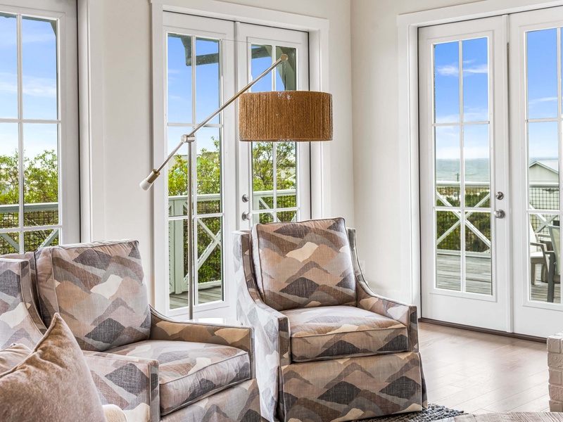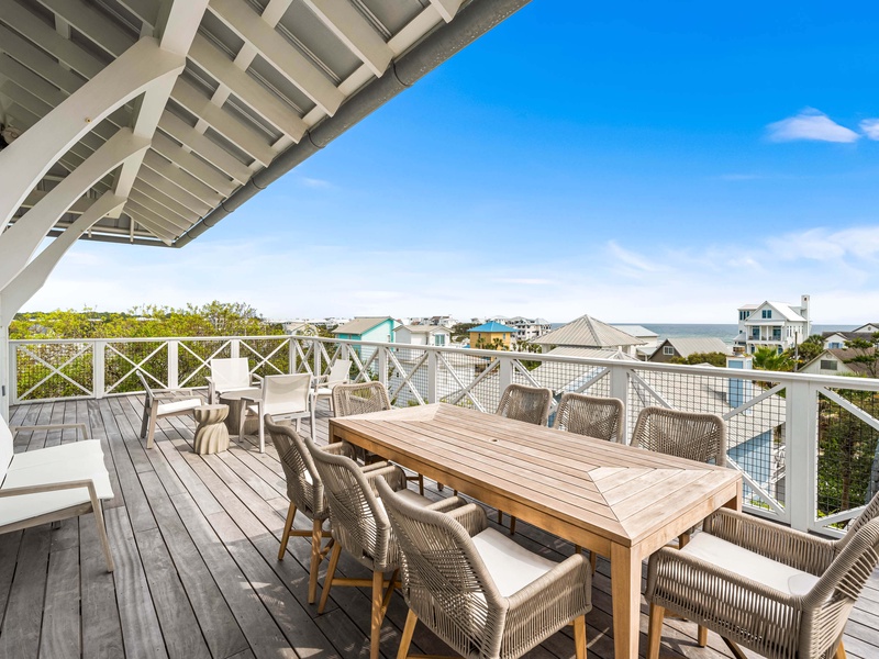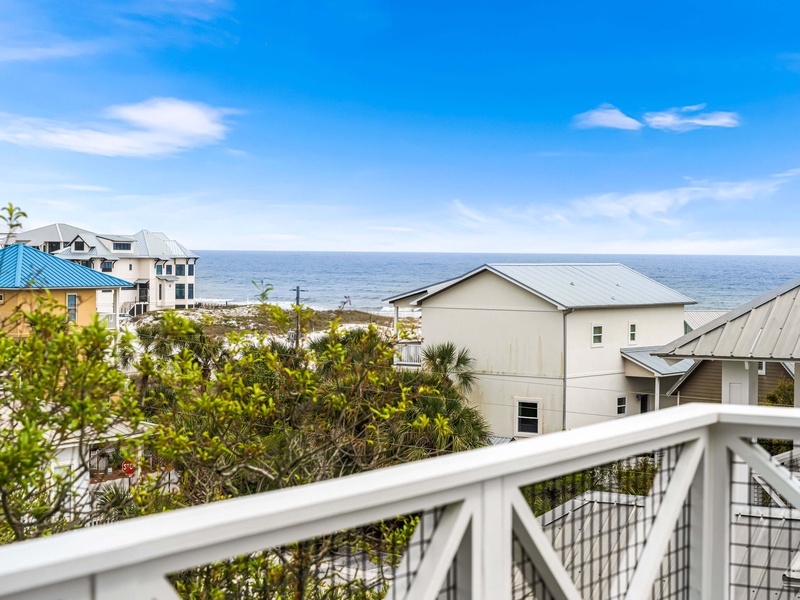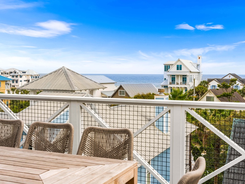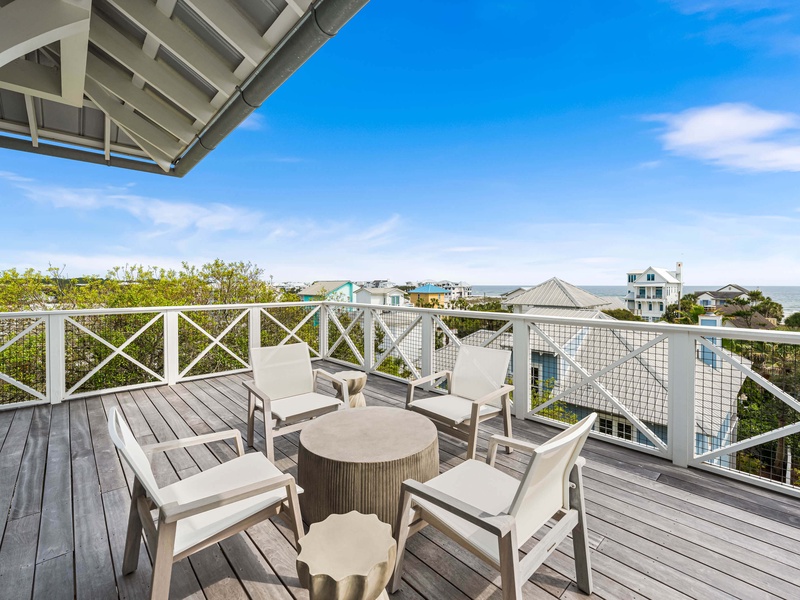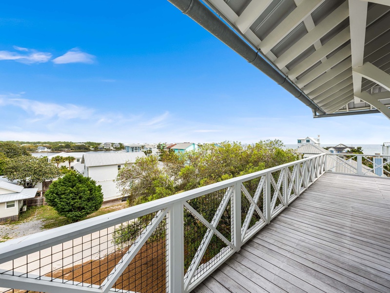 - Panoramic Gulf and Lake Views from the top floor balcony. The balcony also features a sitting area and outdoor dining table