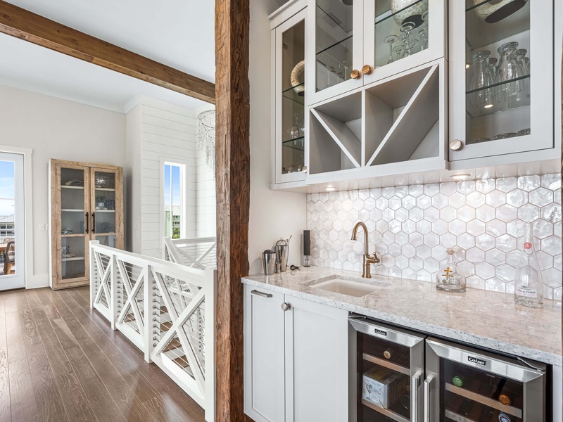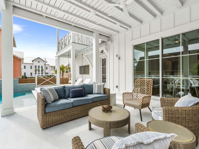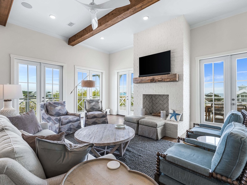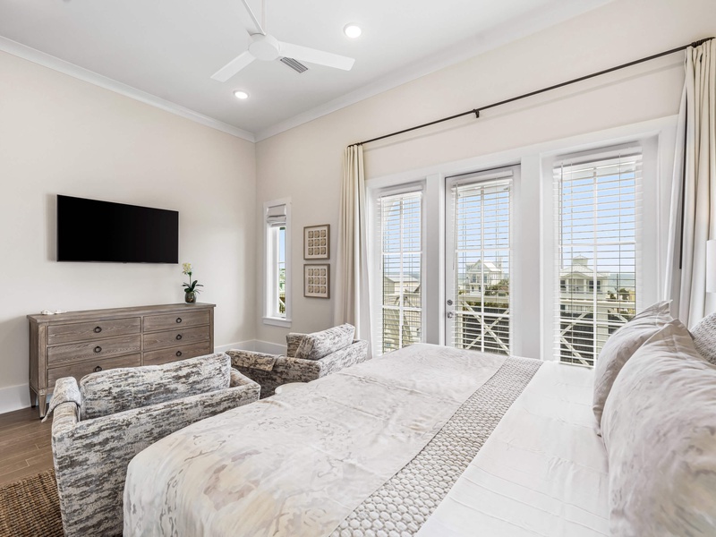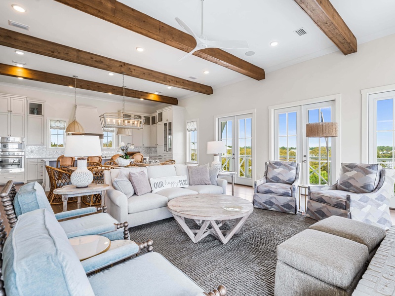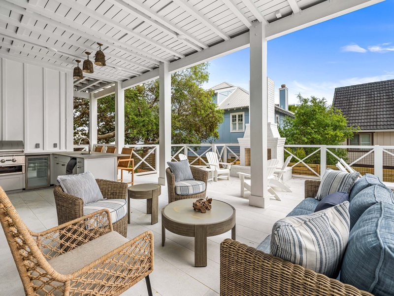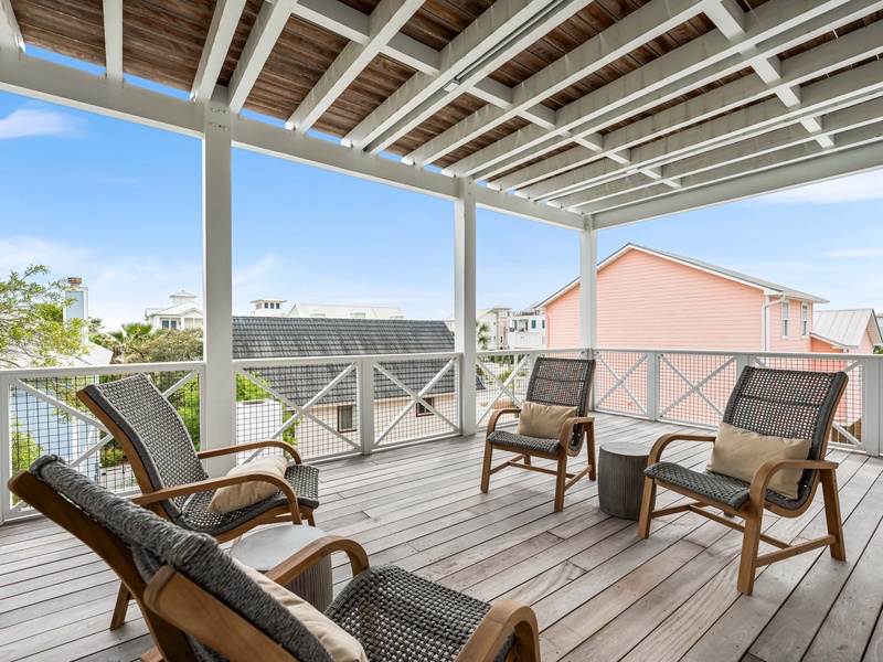 - Panoramic Gulf and Lake Views from the top floor balcony. The balcony also features a sitting area and outdoor dining table