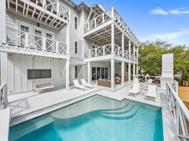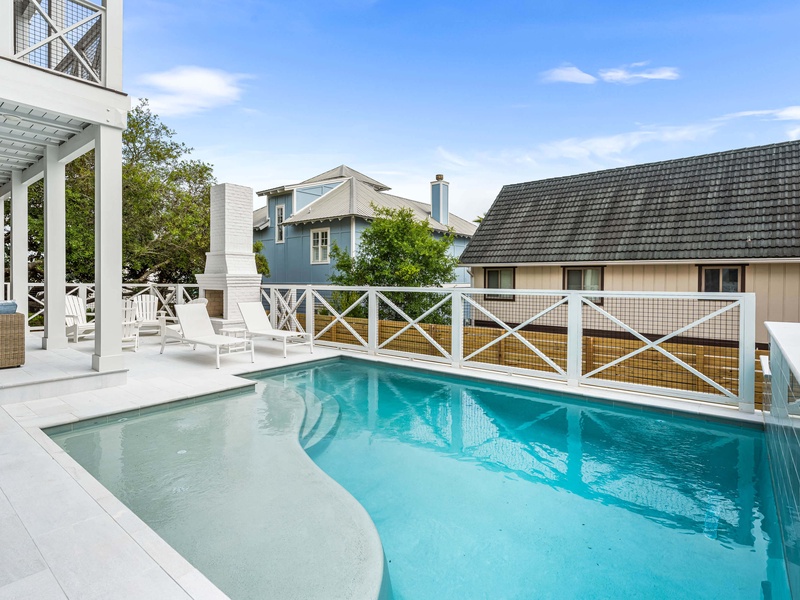 - Large private pool with sun shelf (approx. 17’x15’). The pool can be heated for an additional fee for reservations October – April