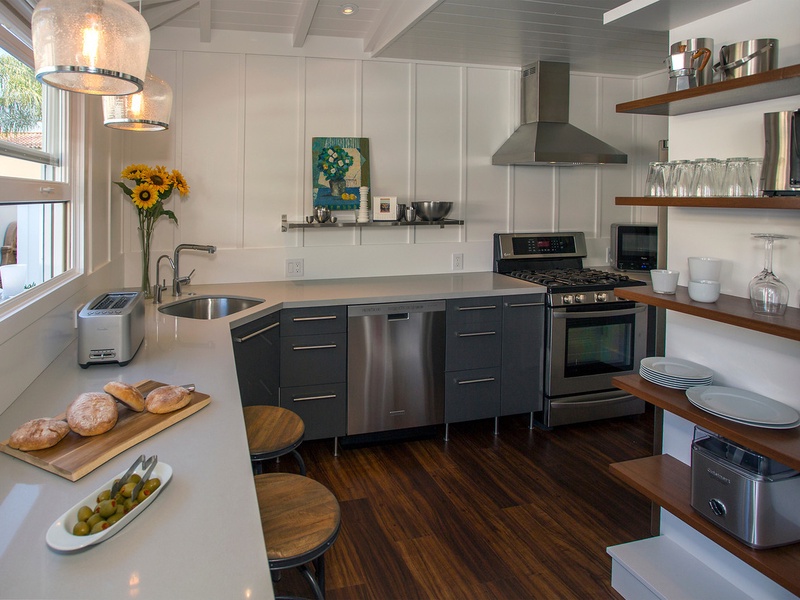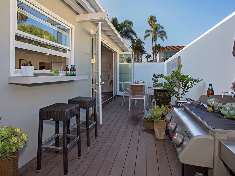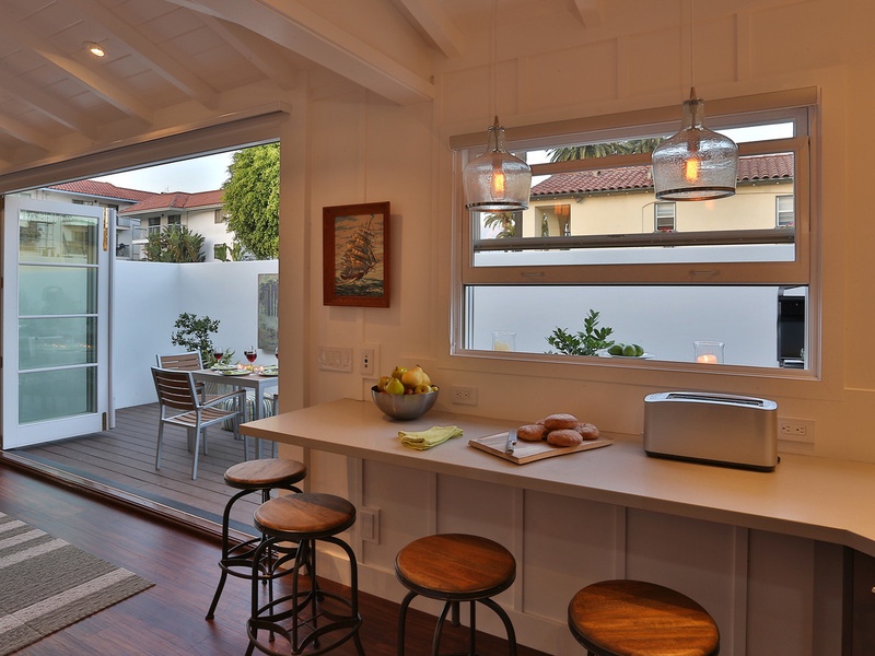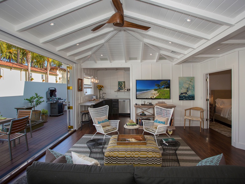 This newly renovated cottage is located in Santa Barbara’s carefree West Beach neighborhood. It’s filled with small bungalows and boutique hotels that are just steps from the beach, Stearns Wharf, State Street, Funk Zone, and the Harbor. The Brewhouse, Toma, Jeannine's Bakery and Chad’s restaurants frequented by locals, and Amtrak station are all close by making the walkability that much better for this Santa Barbara beach rental.