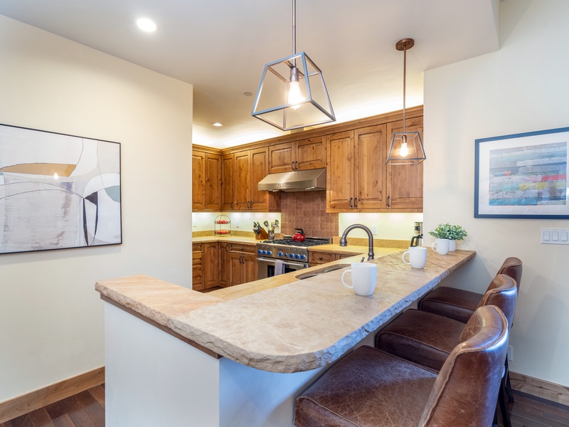 You’ll treasure the tranquil Rocky Mountain memories you’ll make at this warm and welcoming four-bedroom Mountain Village condominium. Boasting a sublime location that allows you to enjoy the ski slopes, hiking trails, and quaint village core with ease, your whole group will have plenty of space to spread out, a terrace hot tub to relax in, and the privacy and peace of this perfect home-away-from-home.