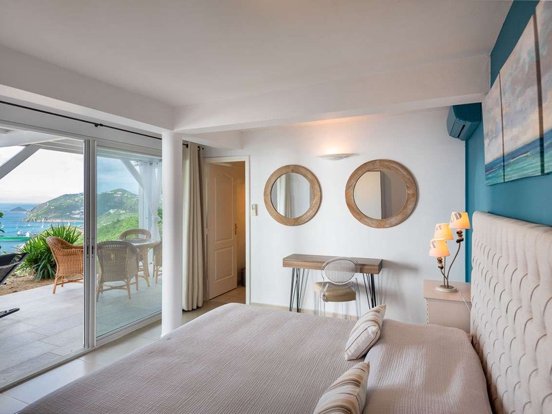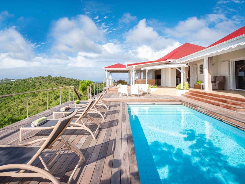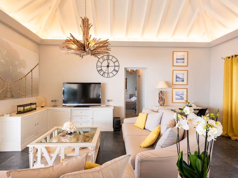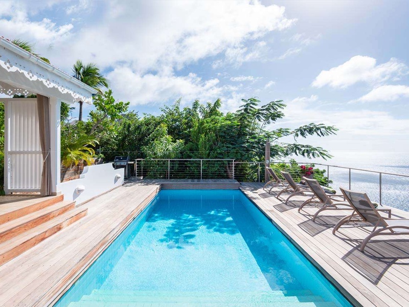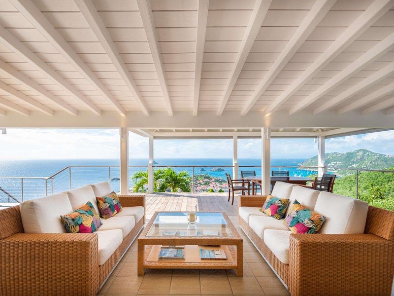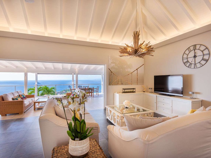 Soak up a 180° view from Shell Beach to the end of the landing strip at St. Jean at Villa Ti Moun, (villa code: WV MOU) a luxurious 3-bedroom villa located in an exclusive gated community in Lurin within minutes of Shell Beach, Gouverneur, Saline and St. Jean beaches as well as shopping and dining in Gustavia. Ideal to enjoy events such as New Year’s Eve fireworks, the Bucket race and Les Voiles!